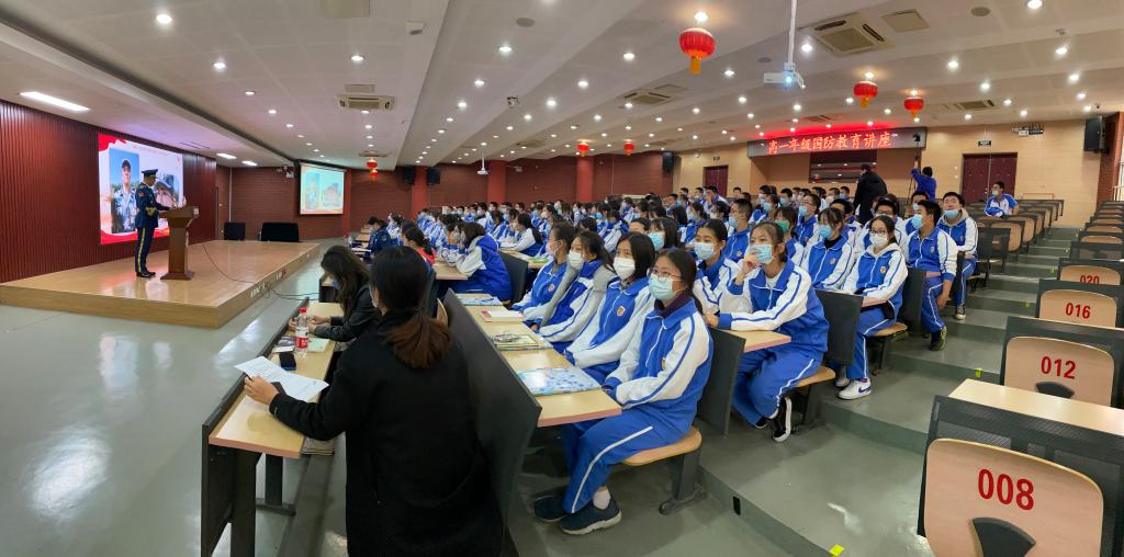 国防教育是建设和巩固国防的基础,是增强民族凝聚力、提高全民素质的重要途径。为了推进国防教育工作深入开展,广泛宣传国防法律法规和国防知识,增强学生国防观念,提升国防意识。11月5日,我校邀请空军军乐团总指挥——马铭总指挥,为高一年级全体同学带来《弘扬阅兵精神,争当新时代追梦好少年》讲座,讲述那些在阅兵乐团演出时不为人知的秘密。