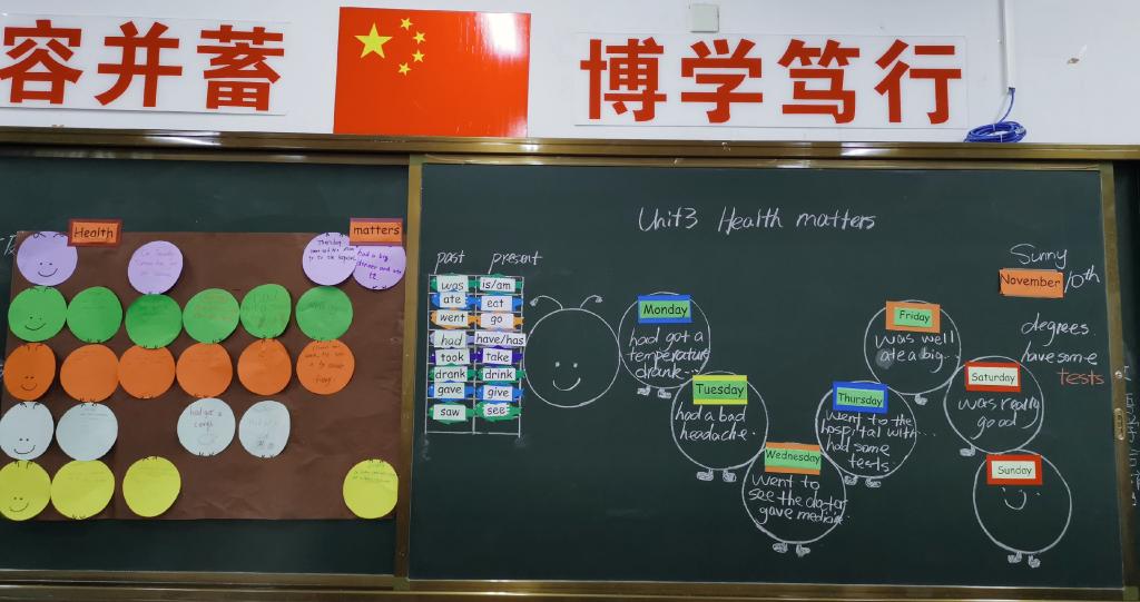 本课为四年级剑桥英语 Unit 3 Health matters 的第一课时。第一课时为听说结合课,是本单元的重点课时。熊利老师以询问天气导入本课的语法重点,即过去式,同时对已学知识health matters和已学的过去式以及一周的名称进行了复习,巧妙地为本课的听读环节做了铺垫。随后,熊利老师抓住了学生对团队合作活动的热爱,引导同学们运用jigsaw listening的方法完成一个project,老师给出范例,巧妙地将板书与小组活动结合,学生根据完成的project进行课堂输出。师生在默契的互动活动中突破难点,充分调动了学生的积极性,将小组活动的形式与有效的口语表达实践有机结合。