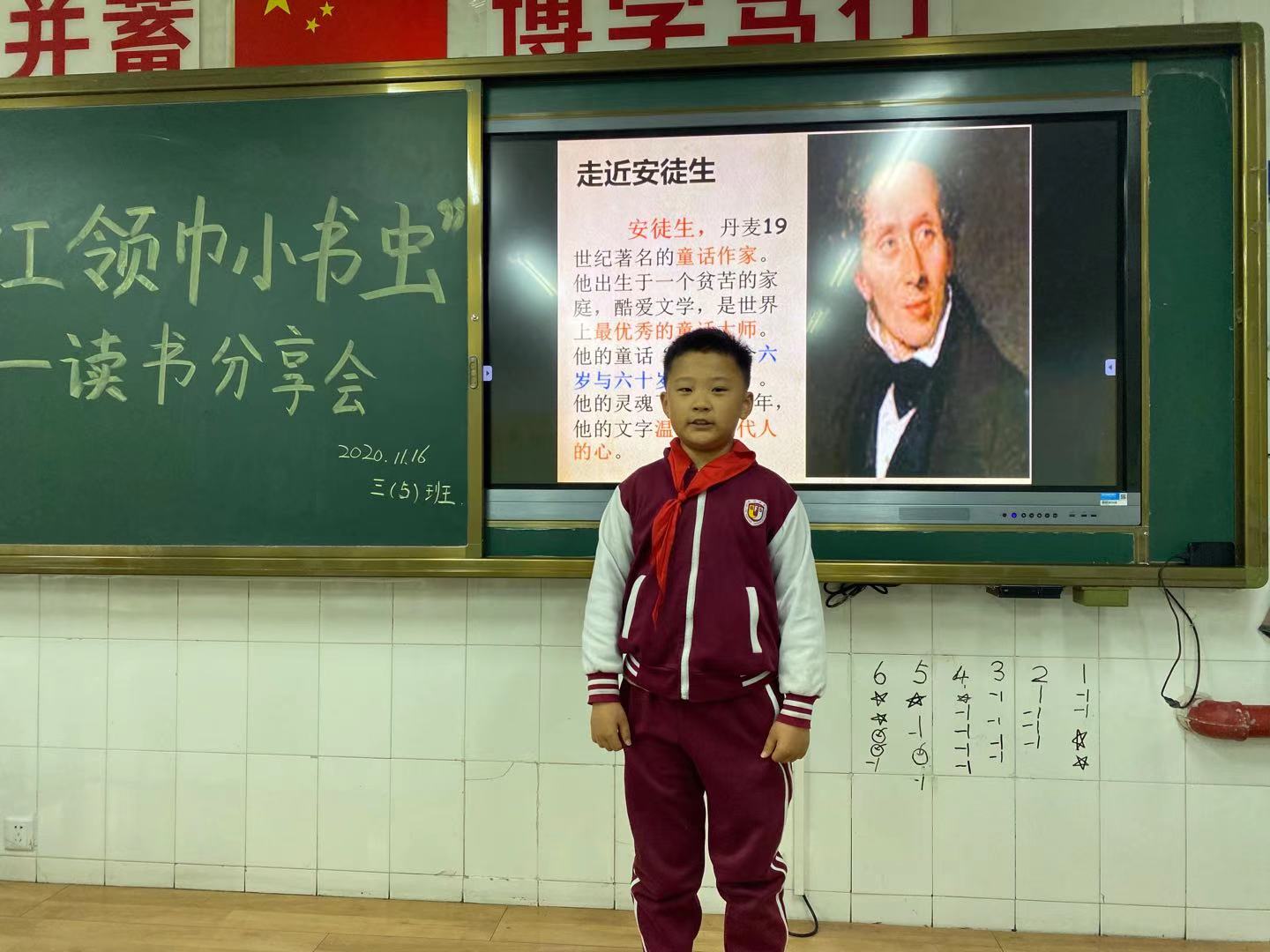 三年级各班举行“《安徒生童话》阅读分享会”活动。各班以小组为单位,进行《安徒生童话》小组交流。本周各小组选派代表轮流分享阅读心得。同学们按照“我想介绍的安徒生童话故事是_________。故事的内容是______。我最喜欢故事中______,因为________。”的句式,与同学们一起分享自己的阅读心得、阅读思考。