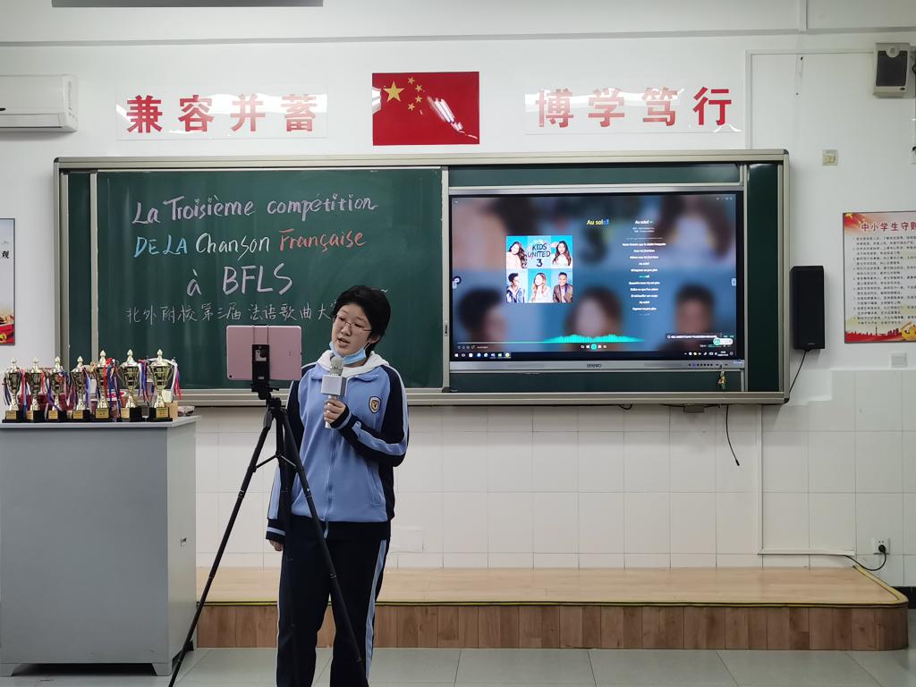 为激发学生们学习法语的热情,营造积极活泼向上的学习氛围。11月18号下午,我校初中法语组举行了第三届法语歌曲大赛,英法复语班全体师生以及法语外教Mélissa出席参加。