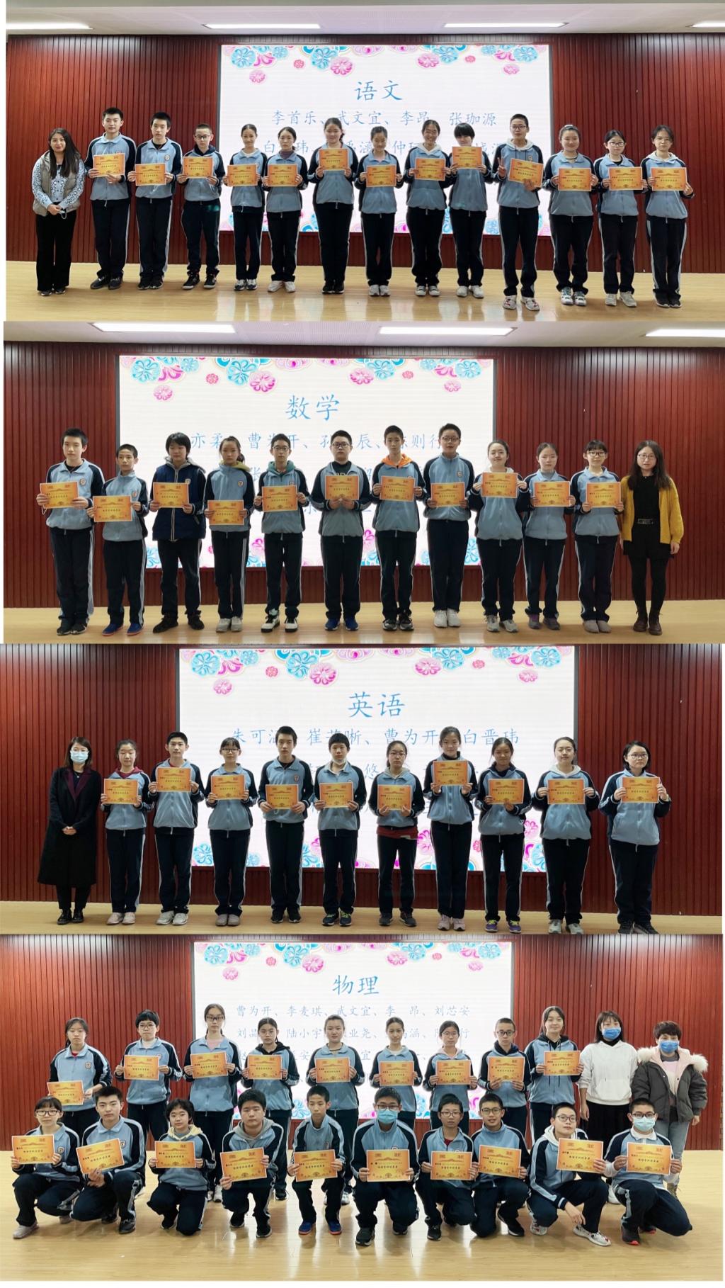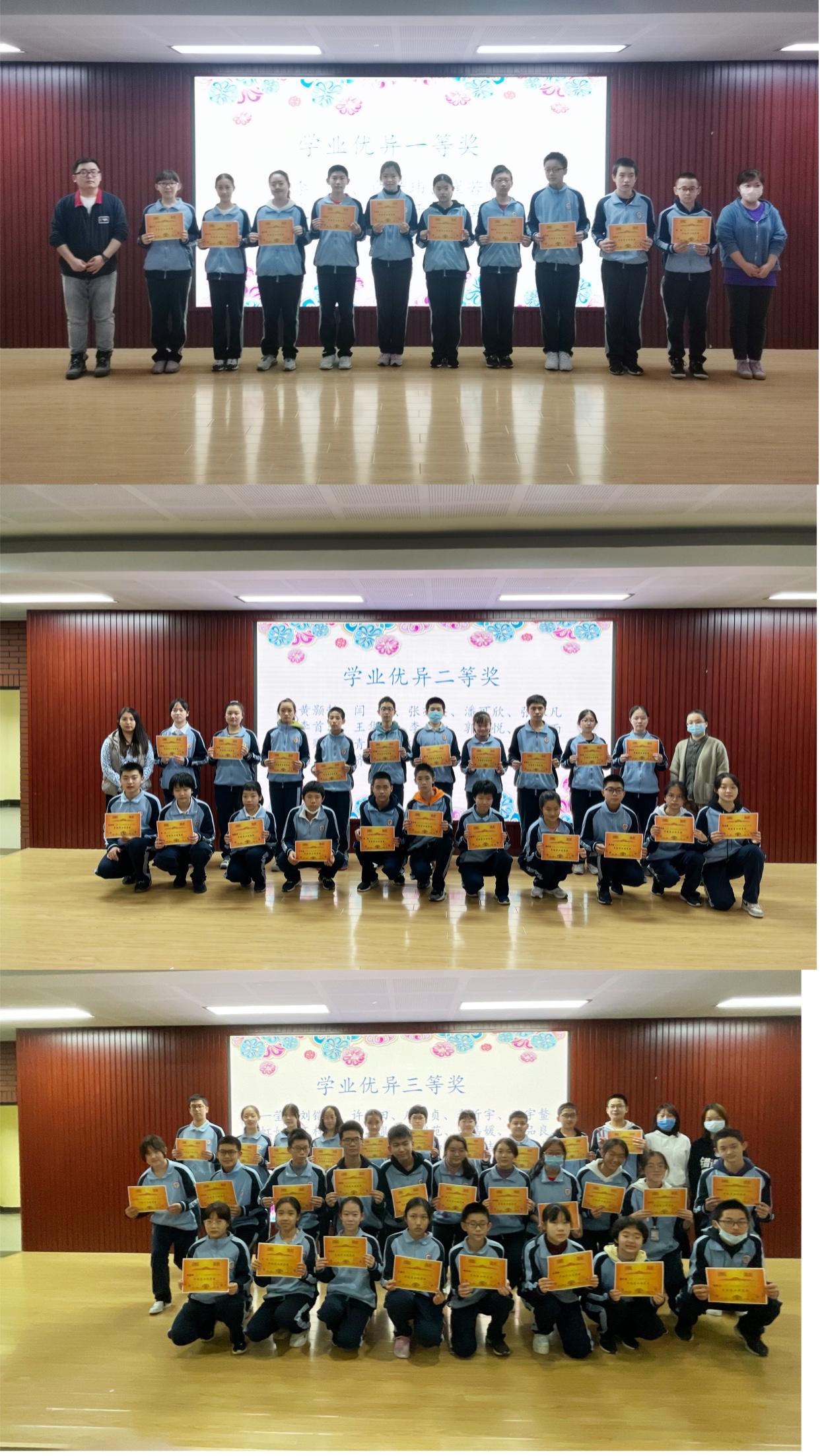 首先,年级颁发进步之星奖来表彰那些努力付出、取得进步的同学们。他们是同学们中平凡的一员,但是两个月里,他们却在平凡中做得不平凡。他们认真地完成每一天的作业,上好每一节课,用好每一个自习,良好的习惯成就了他们学业上的进步。其次,年级对那些“学习领跑者”颁发了单科优异奖及学业优异奖。他们在学习过程中亲师重教,高效听讲;在课下有规有思,自主管理;他们是时间管理大师和知识梳理达人。他们用自己的智慧、理想和行动引领着初二年级同学向着目标迈进!最后,年级部主任杨礼凡老师寄语全体同学,希望同学们善良,有规则意识,尊重生命,懂得感恩;能够懂得榜样的力量,保持一颗学习的心,获得成长的动力。