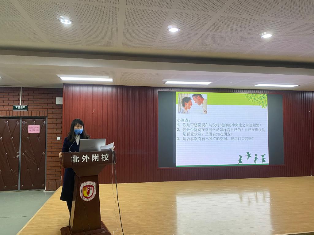 首先,德育处心理老师李丹为同学们做“青春期心理健康教育”讲座,她寓教于乐,深入浅出,通过小视频、游戏互动等教学方式,使学生在轻松玩乐中了解了情绪如何产生、负面情绪会带来什么影响,学习到了管理和宣泄情绪的小技巧。
