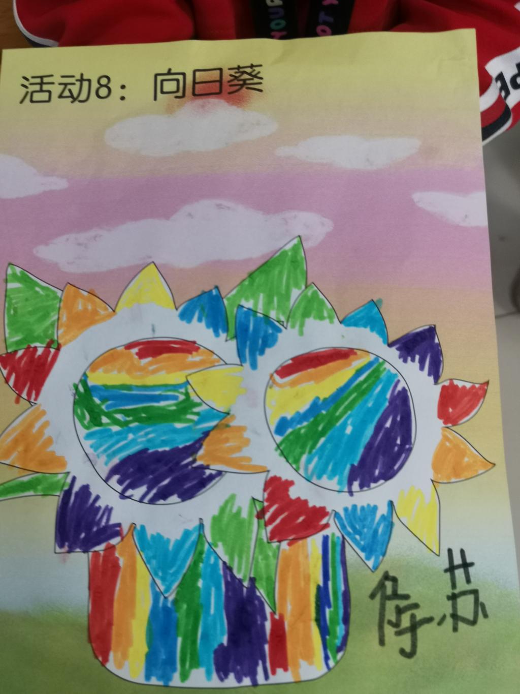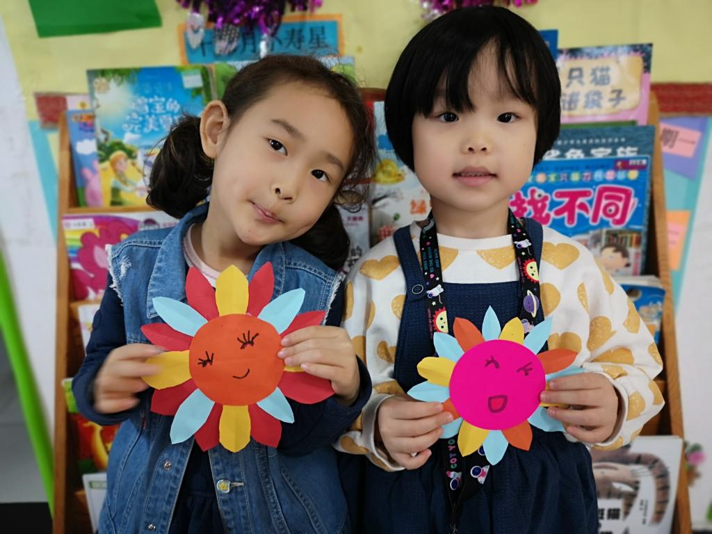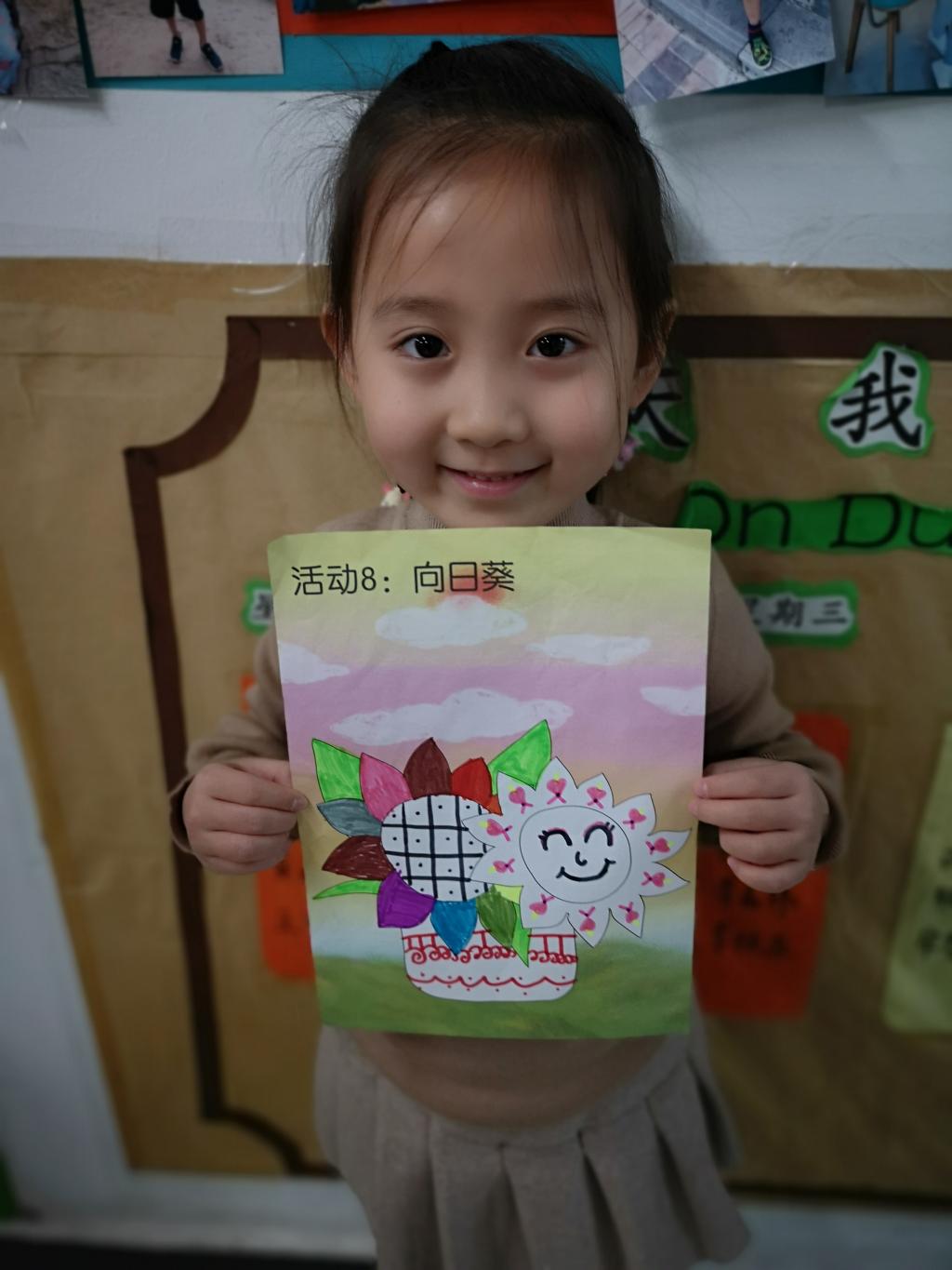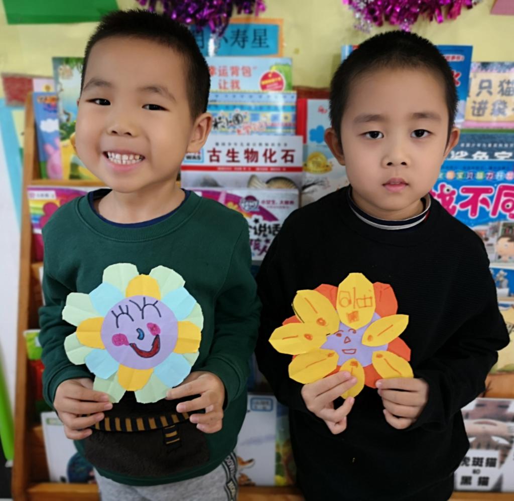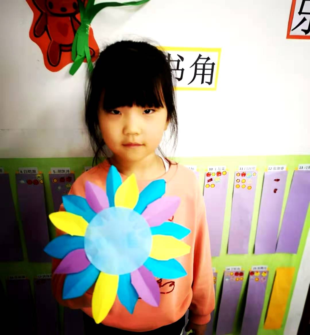 我们预科班的孩子们的向日葵更是色彩缤纷,用绘画和彩纸剪贴的方法制作的向日葵,一定有你喜欢的!有的学生还不会用剪刀,在老师和同学的帮助下完成了制作,孩子们真开心!