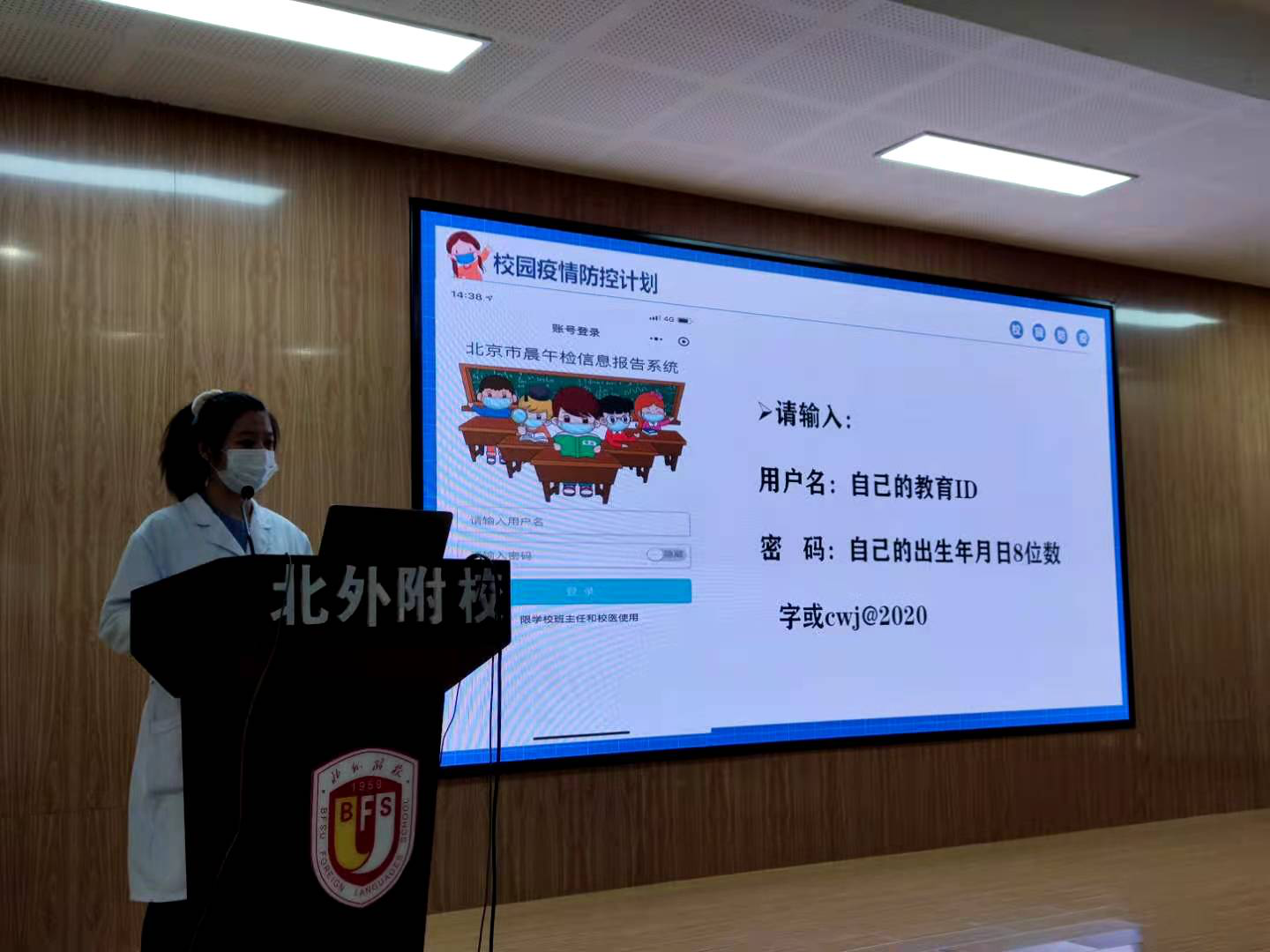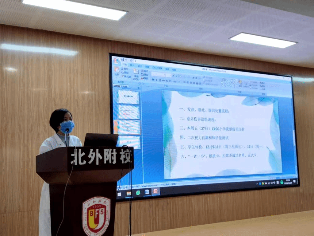 医务室曹大夫、闫大夫培训晨午检上报小程序的使用要求及发热呕吐腹泻处理流程,以及冬季传染病注意事项。