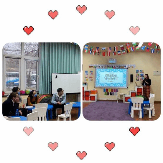 忙中也要互通有无。我们每周都要一起教研,对一周的课程进行详尽的商讨。每个环节,每种道具,都是思想的统一,运用上却又极具个人特色。正是我们这样的全情投入,这样的多元与包容,这样的不断探索与尝试,使我们的课程以颠覆传统意义的形式呈现给孩子们,使孩子们能够在更轻松更快乐的氛围中达到学习的目的。