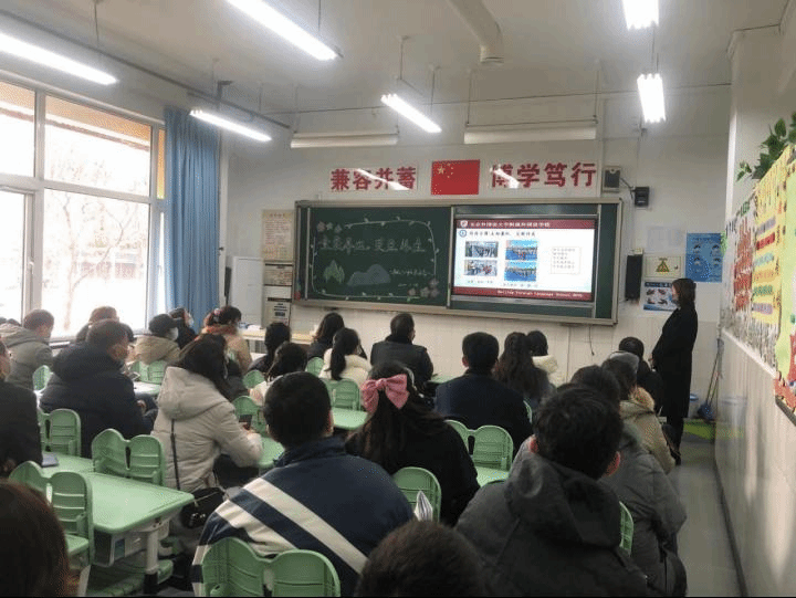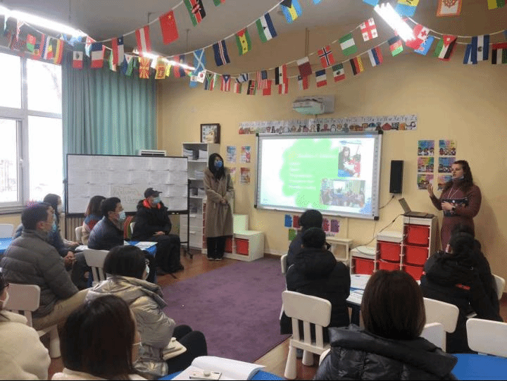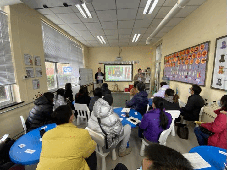高端英语课程班的外籍教师也参加了本次家长会。他们从教学理念、教学方法、课程组成,以及教师对各项技能的培养方式、课堂管理、评价方式等方面做了介绍,并将每位学生平时课上的作品发给家长欣赏;设计了“学生和家长互致一封信”的活动,将学生提前录好的“致家长信”播放且鼓励家长在信件的另一边写上对孩子的寄语。离开教室前,家长参观了教室的展板和墙面上其他学生作品。