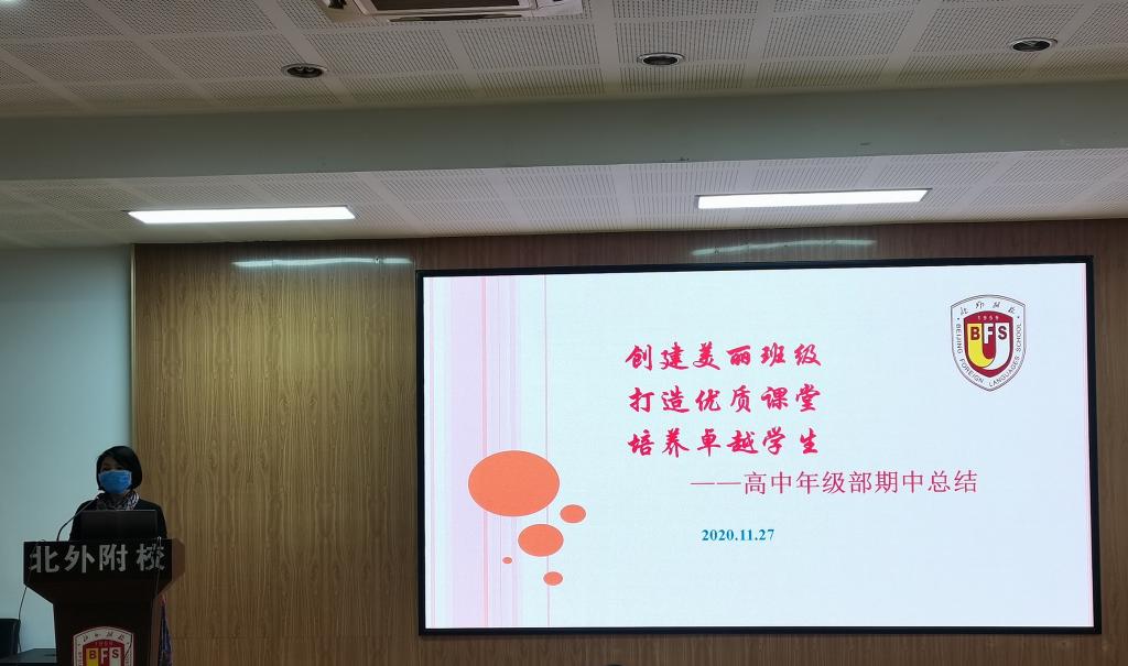 11月27日下午4时,高中校区期中总结大会在一阶召开,高中教务主任李晖主持会议,高中校区执行校长王静及全体高中教师参加了会议。