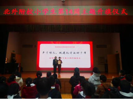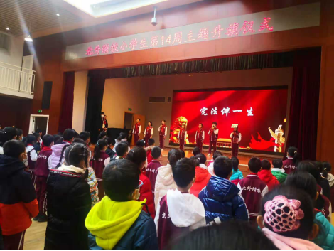 今年12月4日是第七个国家宪法日。11月30日,在“国家宪法日”即将到来之际,我校小学举行了第14周主题升旗仪式。本周升旗仪式的主题是“严于律己,做遵纪守法好少年”。四年级全体学生在国瑞厅参加升旗仪式,其余年级学生的升旗仪式在班级进行。