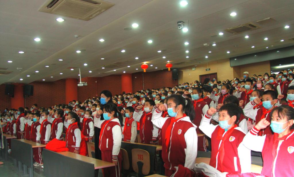 随后,全体四年级学生列队整齐,举起右手,庄严宣誓:“我坚信我是一名优秀的学生。学习是我的天职,努力是我的方向。永不气馁,自强不息。相信自己,我有潜力。诚实有信,严于律己。团结友爱,共同前进。父母将为我自豪,老师将为我骄傲。我行!我能行!我一定行!”。