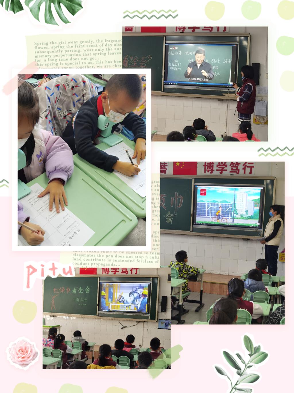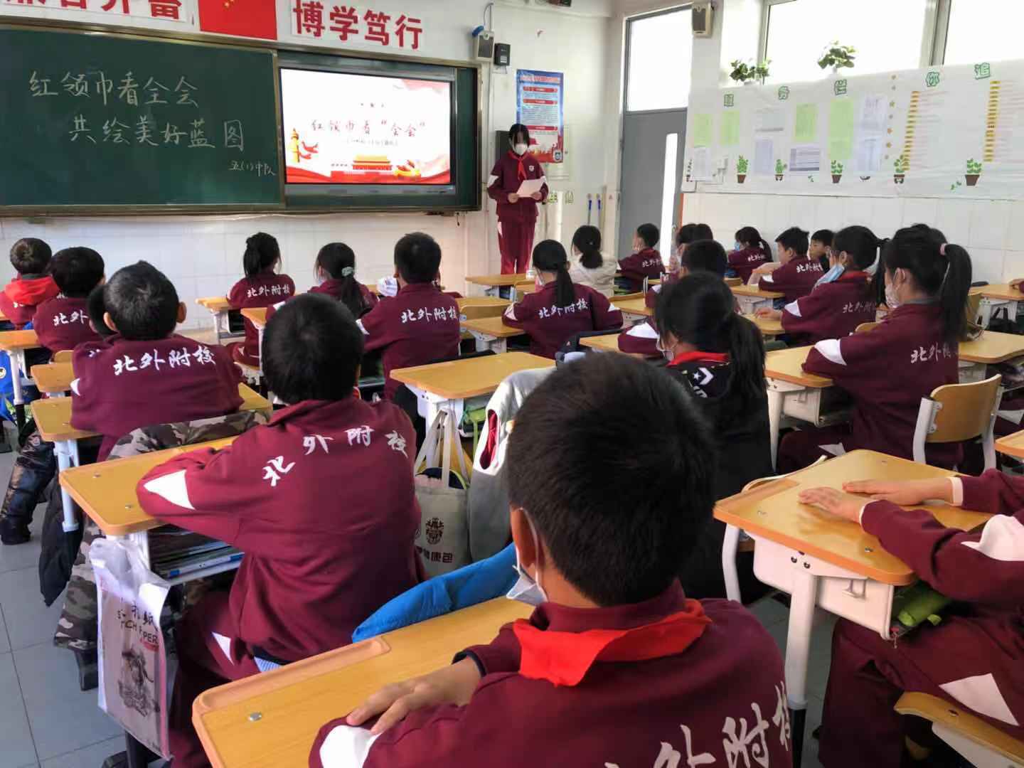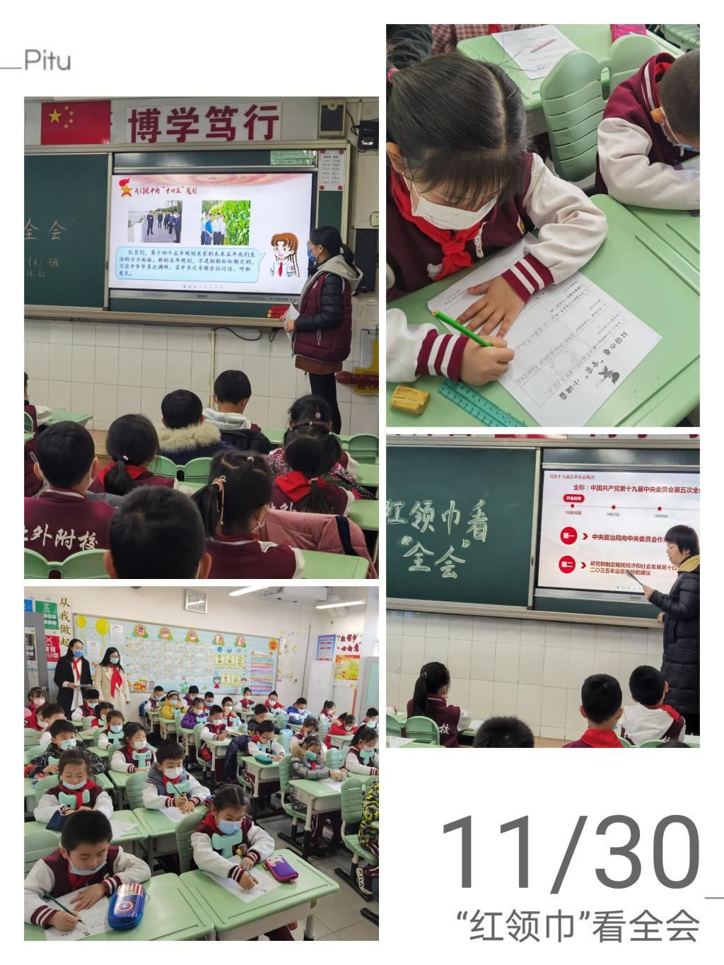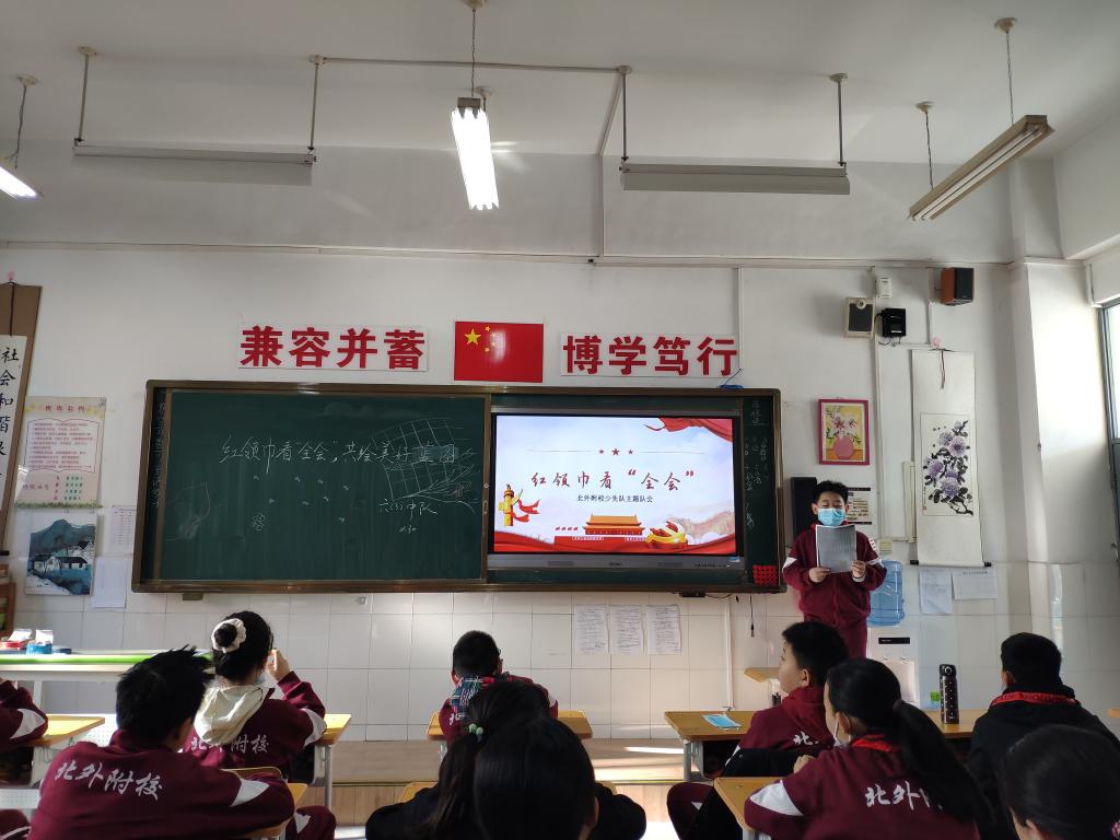 为深入贯彻党的十九届五中全会精神,让少先队员更好地学习十九届五中全会精神,了解“‘十四五’规划”和二〇三五年远景目标,进一步增强队员自立自强、从小树立远大理想、坚定跟党走的信念。11月30日,我校小学各中队开展了“红领巾看‘全会’,共绘美好蓝图”主题队会。学区团队负责人张慧敏老师走进各中队,了解队会开展情况。