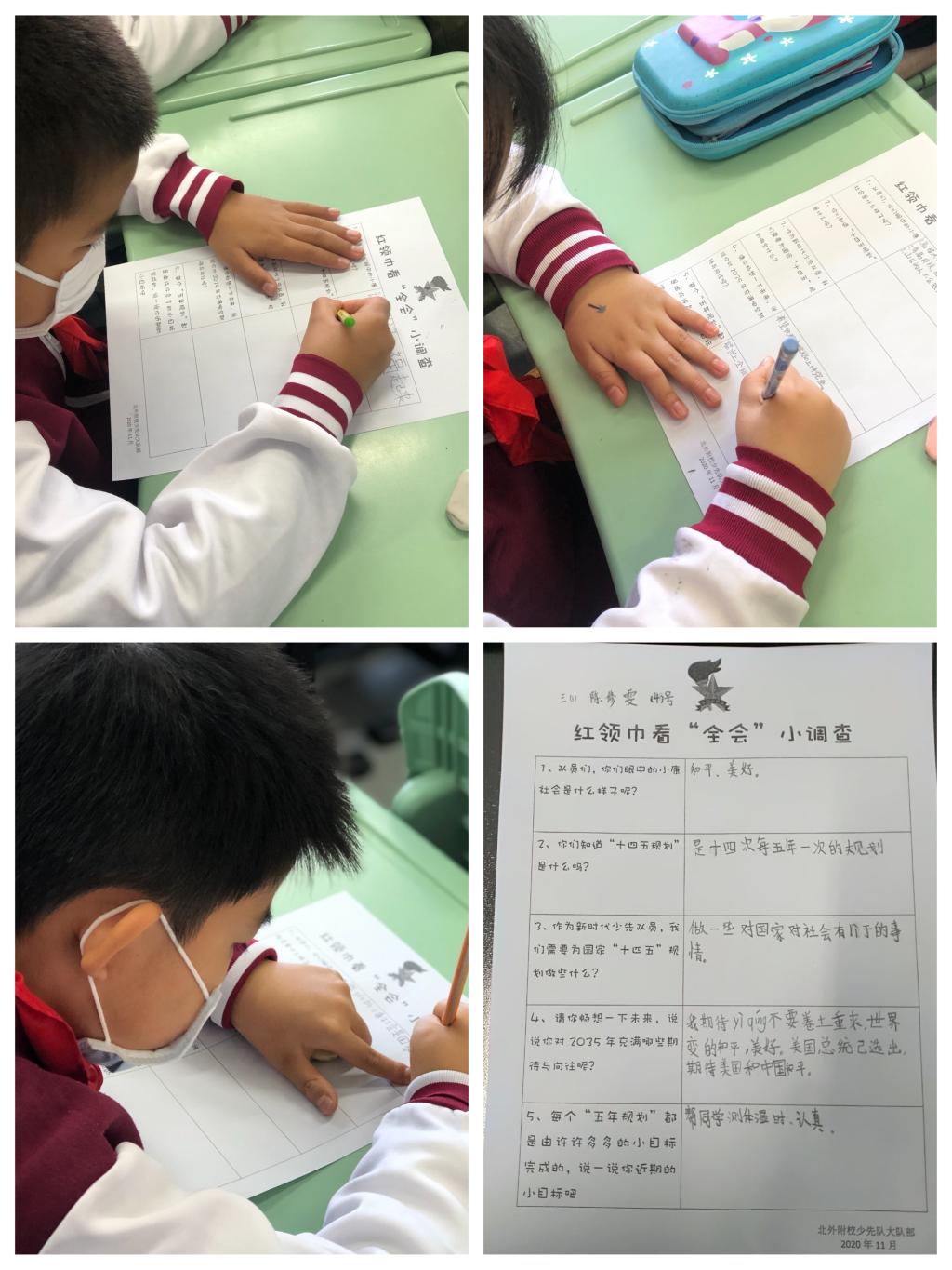 主题队会从“点赞十三五”、“习爷爷问策十四五”、“十四五再出发”、“畅想2035”四个方面展开,队员们通过一系列学习活动,了解五年规划的基本常识和十九届五中全会的基本概况,感悟到党领导人民建设新中国的伟大成就,了解了国家“十四五”规划的基本内容。