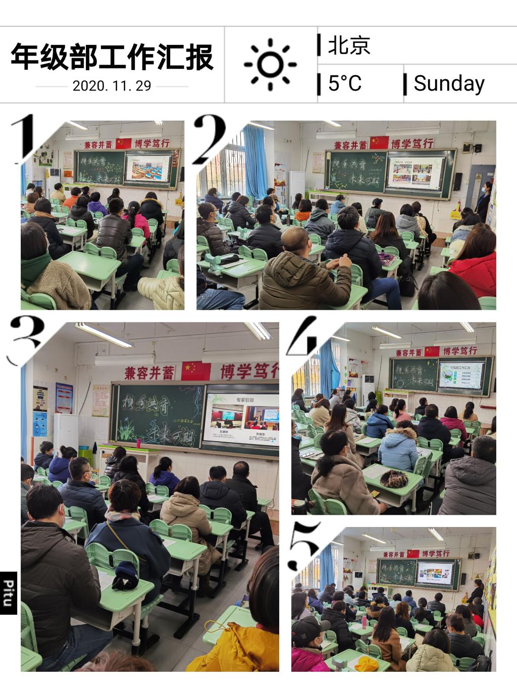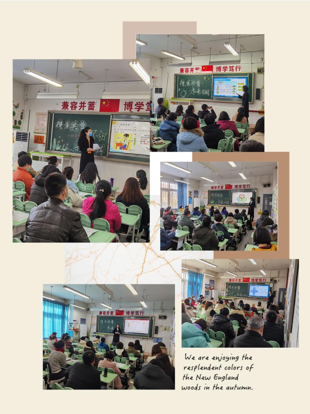 各班班主任、副班老师主要从建设理念、培养目标、育人方法、育人成效四个方面做了详尽、细致的汇报。针对低年级孩子的特点,结合班级的培养目标,向家长展示孩子们的点滴成长。各班级的建设是以学生真实的行为和心理特点为依托,围绕一日常规和思想品质两个方面进行培养,从德育活动到学科活动,从学生自我管理到互相监督、共同进步的评比机制,每个环节都体现班级精神,培养孩子积极向上、文明有礼、懂得感恩、勇于担当的宝贵品格。