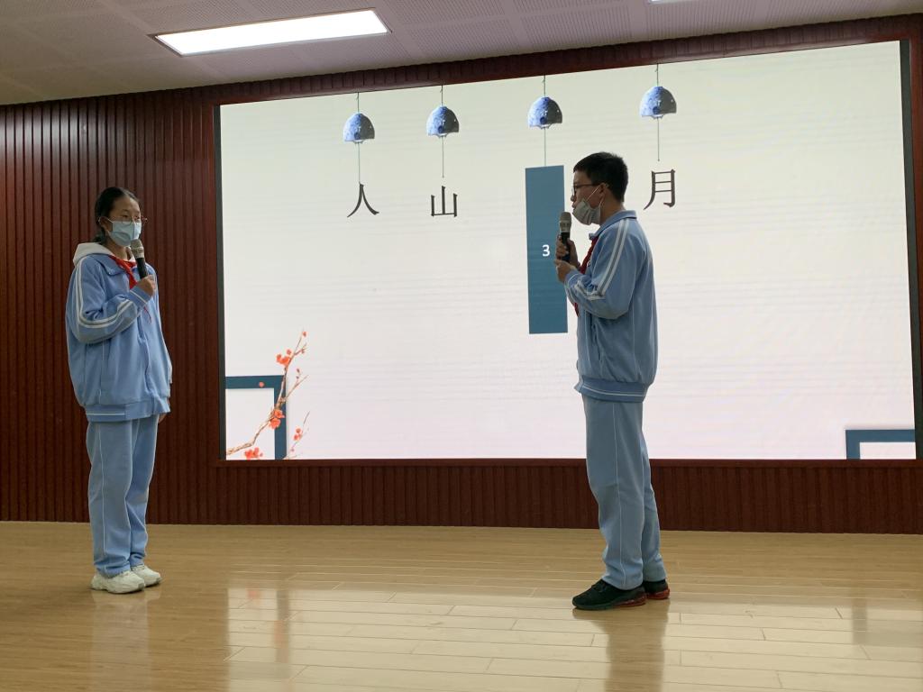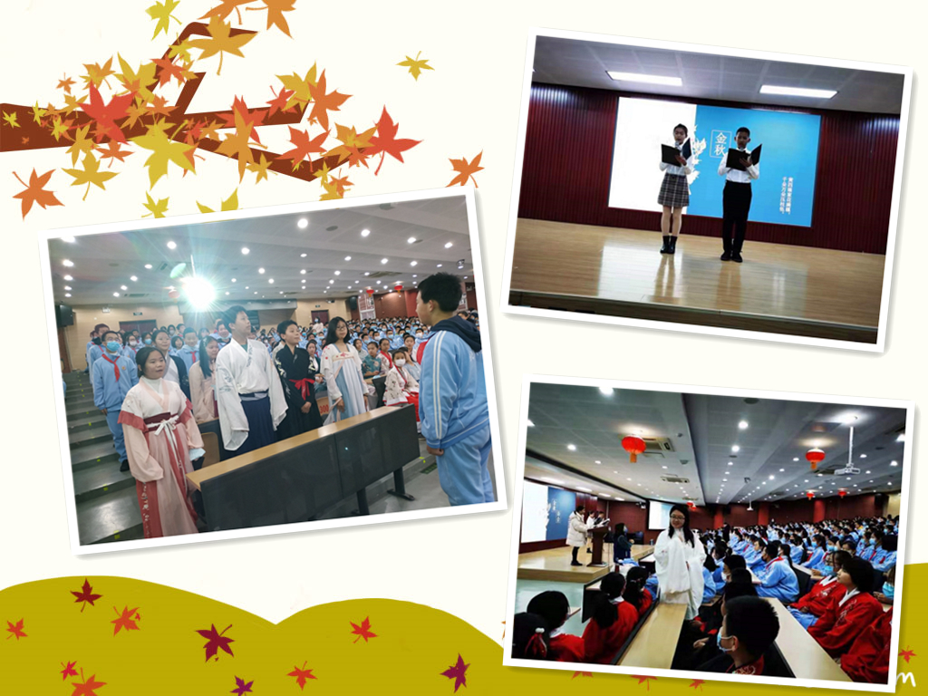 近日,我校初一年级在二阶开展了语文古诗文背诵大赛——“金秋诗会”,初一年级全体师生参加了此次比赛。
