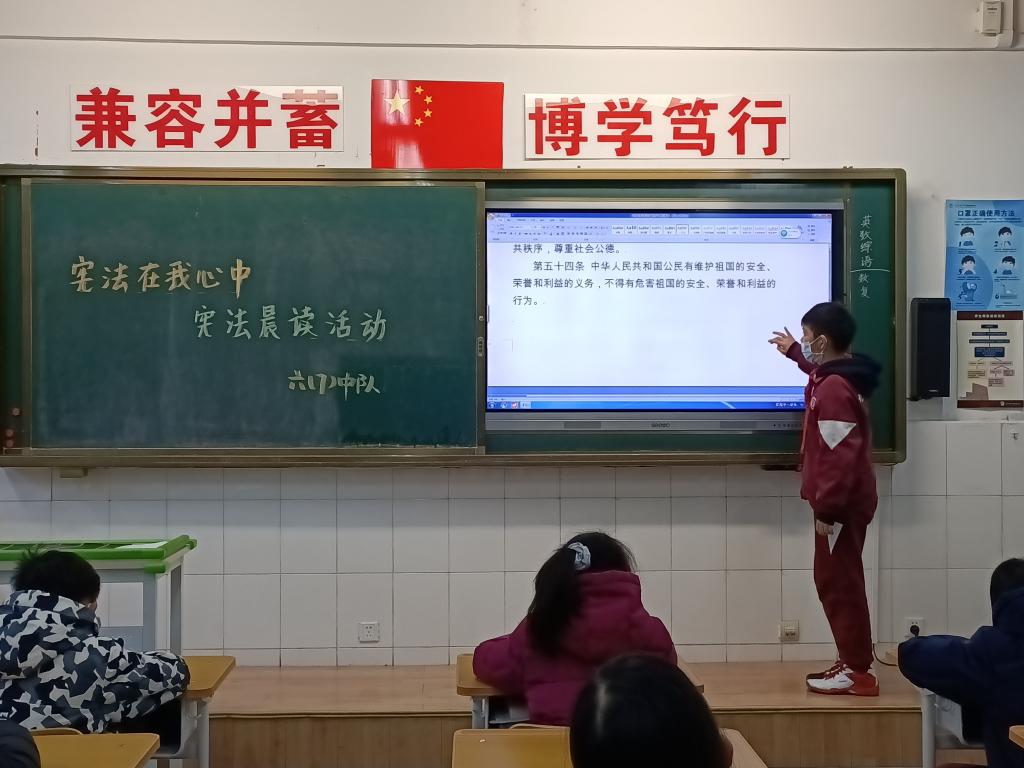 12月4日是我国第7个国家宪法日,也是我国第20个全国法制宣传日。为进一步普及宪法知识、弘扬宪法精神,增强师生法制观念,我校小学组织开展了“宪法在我心中”系列主题教育活动。