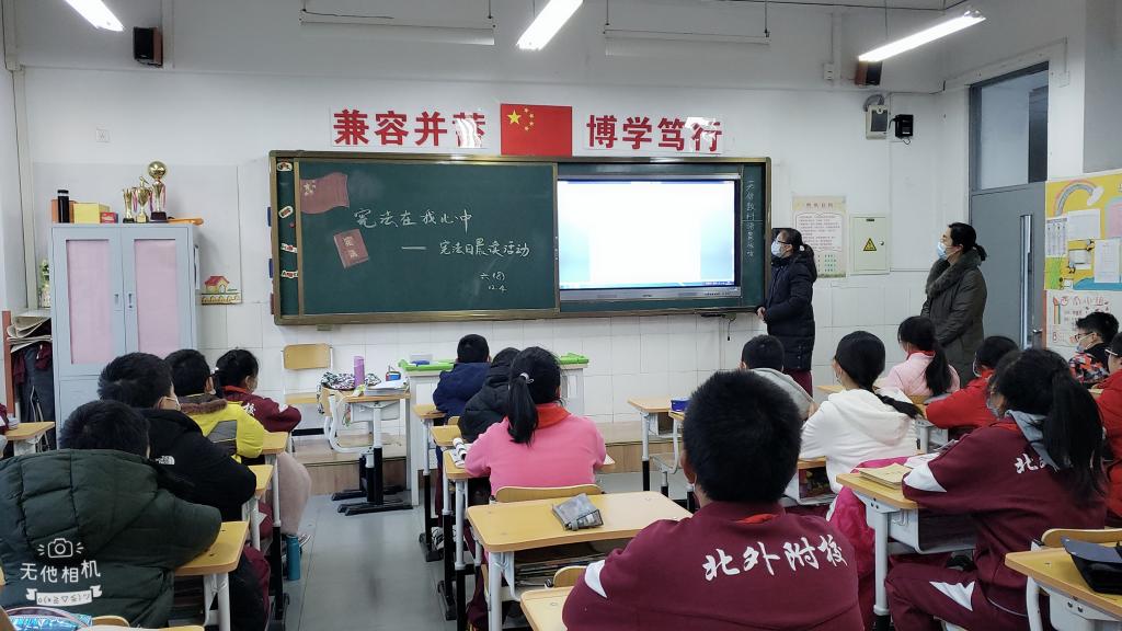“国家宪法日”当天,各年级部利用晨读时间组织全校师生进行了宪法学习。通过诵读宪法内容的部分条目,使学生对宪法的具体内容有了初步的认识,明确了宪法是国家的根本大法,宪法以法律的形式确认了中国各族人民奋斗的成果,规定了国家的根本制度和根本任务,具有最高的法律效力。