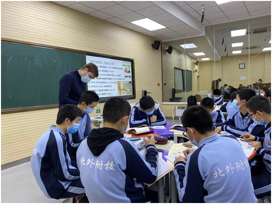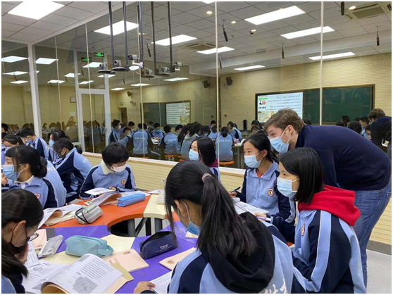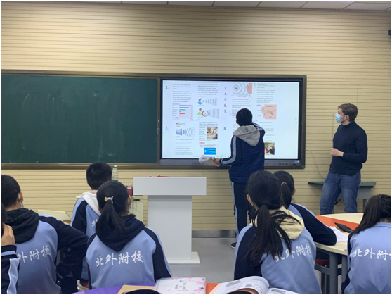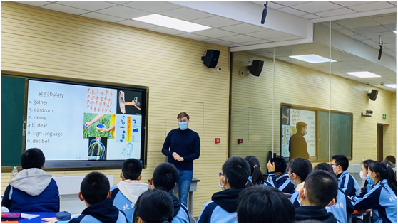 12月4日上午,初二年级英语班外教Ryan进行了关于声音的公开课展示。初中高端英语项目负责人张丽君主任以及英语组教师共15余人观摩听课并评课。
