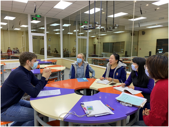 课后,中外籍教师进行了公开课的评课与交流。Ryan简单陈述了本节课的目标并口头反思目标的达成情况。听课教师反馈了听课感受并提出建议。教师们一致认为本堂课完整而高效,学生对于文本的理解能力、对于生词的运用能力、对于科学知识的吸收能力都是非常棒的。