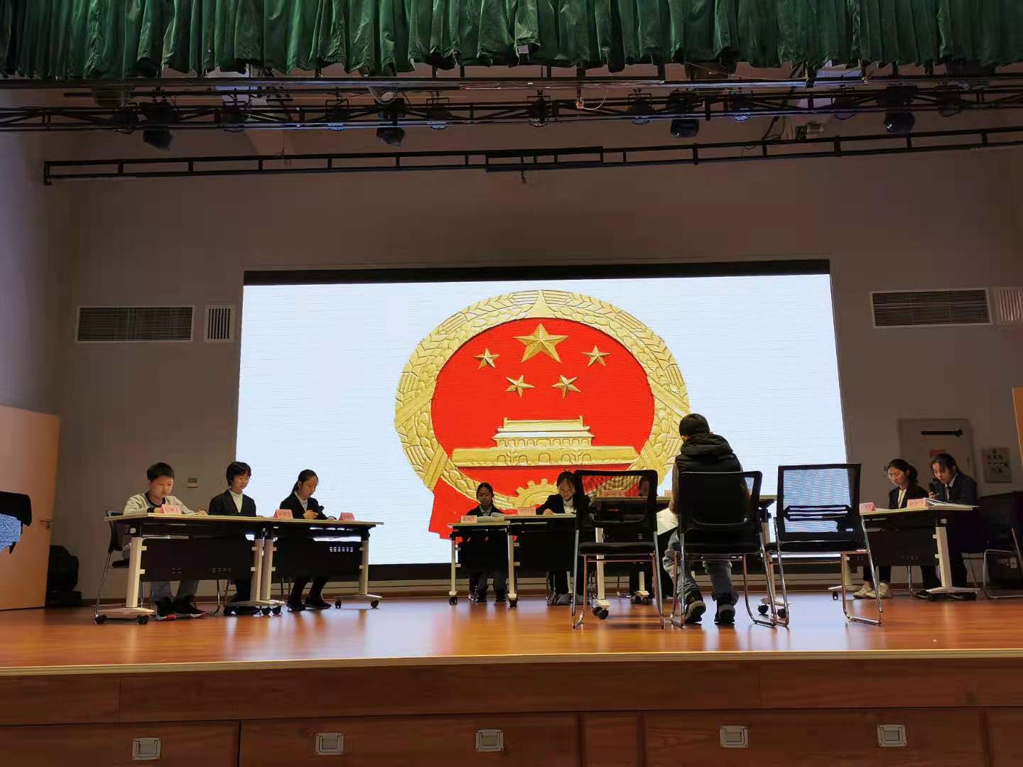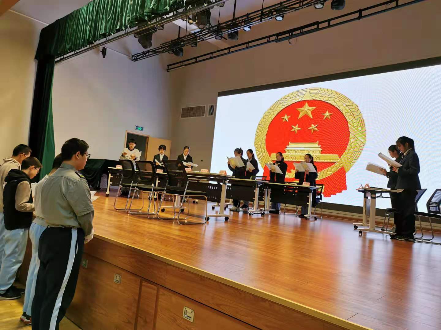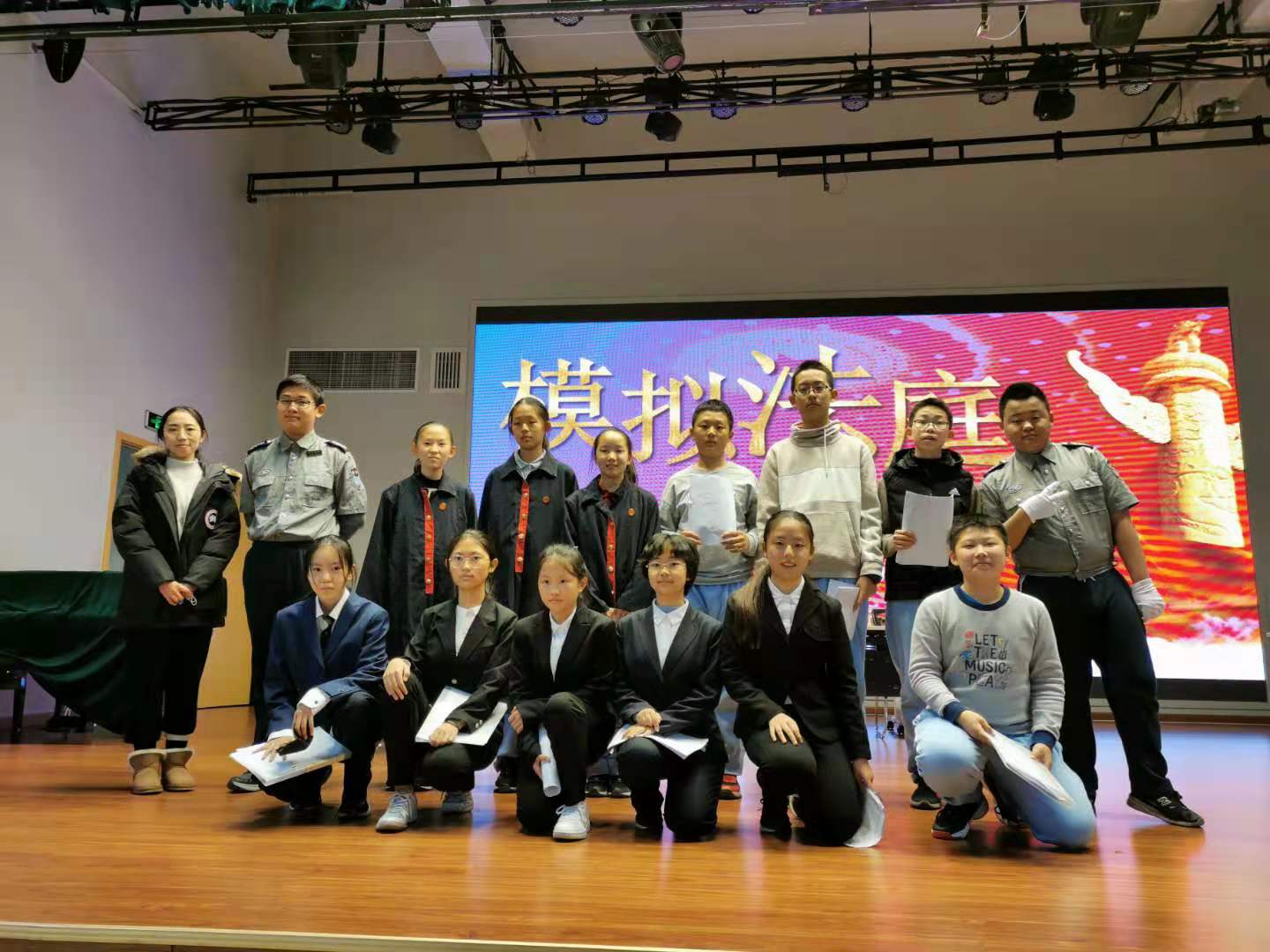 为进一步加强平安校园活动,努力营造学生学法、知法、守法的法制氛围,增强学生的法制观念。12月8日下午,我校初中生模拟法庭在国瑞厅成功举行。本次模拟法庭活动由初中德育处副主任于颖、文综教研组组长伊广花、初二年级政治老师郭丽组织。