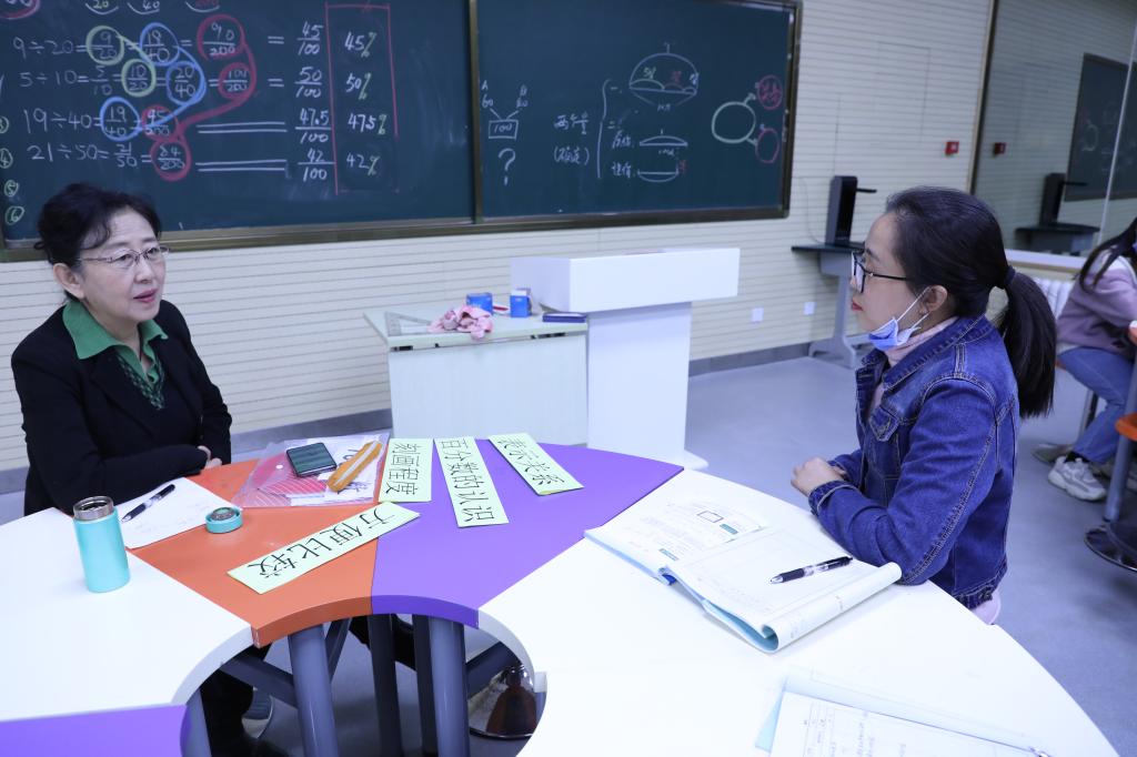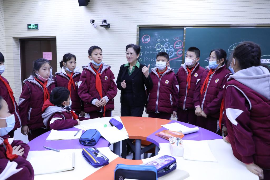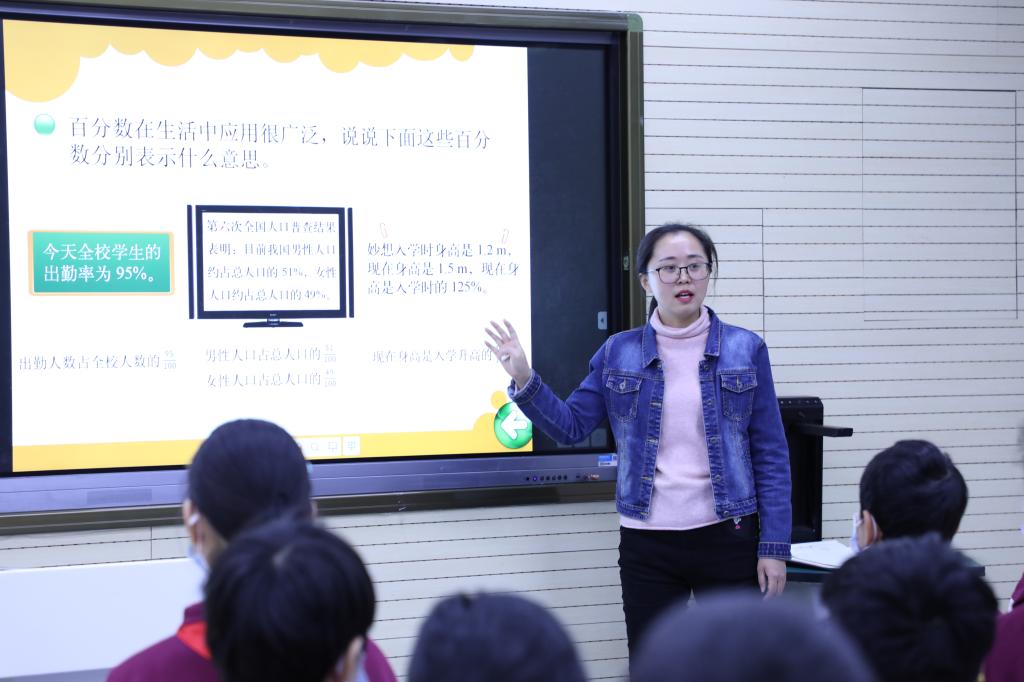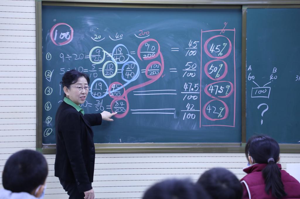 课后,吴正宪充分肯定了王晓晨教学思路清晰准确、对教材内容深入挖掘,并表示整个教研组在正确的研究道路上前行。在轻松、愉快的气氛中,吴正宪与大家交流分享了这堂课的“前世今生”。她指出,百分数的教学要凸显其统计意义,引导学生从多个维度来理解百分数。在现实情境中引导学生理解百分数是对现实世界中两个数量关系的表达,感受百分数在现实生活中的广泛应用。