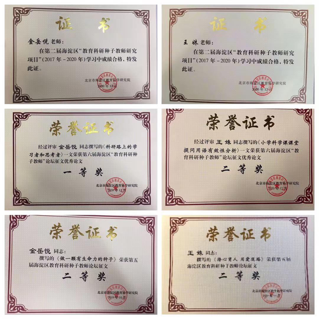 2020年12月17日,第二届海淀区“教育科研种子教师项目”顺利结束,我校教师金岳悦和王姝参加了此次研修活动,于2017年11月开始,经过3年的培训学习,拓展了教师视野,不仅让老师们接触到了最先进的前沿理论,还让老师们在理论和实践相结合的过程中,将所学的知识应用到教学实践中去。