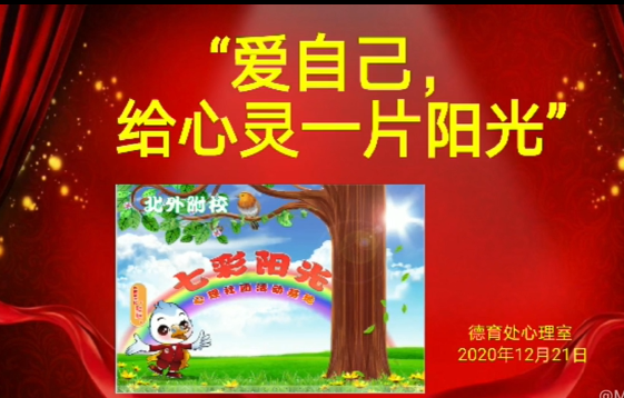 德育处心理教师李丹做了题为“爱自己,给心灵一片阳光”的国旗下讲话。她指出:爱自己,要做到悦纳自己,关注自己的情绪,及时处理自己不良的情绪;还要关爱自己的身体,学会感恩。她向全体同学发出倡议:爱自己,就从现在开始给自己的心灵注入微笑、乐观、自信、坚强、乐于助人、宽待别人的阳光,做一个主宰命运、享受生活的阳光少年!