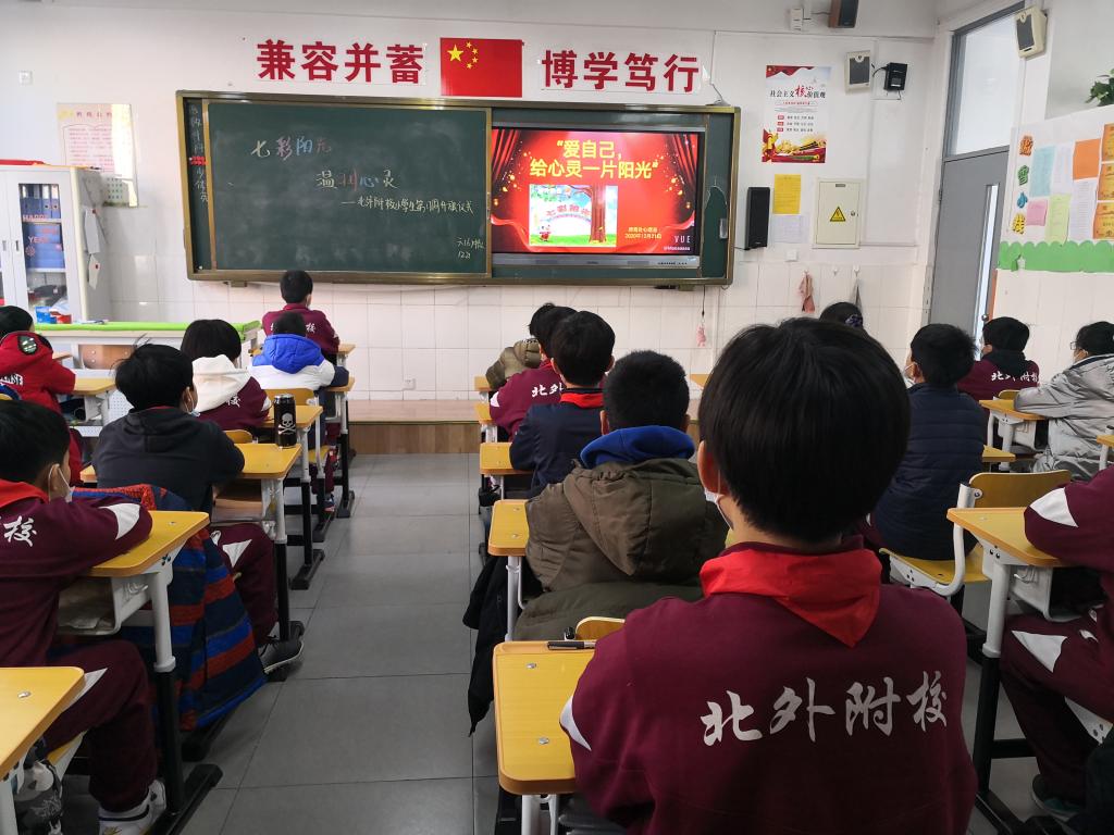 之后,学生共同观看了精神卫生科普动画片《心理健康,生命阳光》。学生通过短片了解了什么是心理问题,并学习了心理疏导和专业干预等解决心理健康问题的办法。