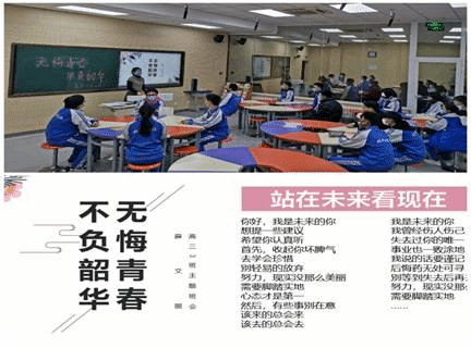 12月21日下午第八节课,高三(3)班以“无悔青春﹒不负韶华”为班会主题,薛老师带领全班同学重拾梦想,重燃斗志。第一个环节是再话梦想。薛老师借用一个关于梦想与奋斗的混剪视频,让同学们看到不同人的梦想和实现梦想的艰辛过程,坚定了同学们当下正在为实现梦想而努力奋斗的信念。紧接着薛老师借助励志的话语,比如“当一个人知道自己想要什么时,整个世界都会为之让路”、“先努力让自己发光,世间美好才能逆光而来”、“没有人注定平庸,只有人甘于平庸”、“愿你成为自己的太阳,无需凭借谁的光”等引导同学们说出自己的梦想。人生是一部没有预演、不能彩排的电视剧,但它可以通过目标、规划、努力、成为我们想要的样子。第二个环节是喊出誓言。“潜心砥砺,志比金坚;精诚团结,誓成蜕变;挑战自我,不断超越;破釜沉舟,直破楼兰。”铮铮誓言,拳拳决心,同学们尽情释放内心的力量。第三个环节是站在未来看现在。在薛老师的带领下,同学们以未来的身份,给现在的自己写了一封信。“你好,我是未来的你,想提一些建议,希望你认真听。首先,收起你坏脾气,去学会珍惜,别轻易的放弃。努力,现实没那么美丽,需要脚踏实地,心态才是第一。然后,有些事别在意,该来的总会来,该去的总会去……”收起笔,回到当下,只有努力与奋斗才是实现梦想的捷径。