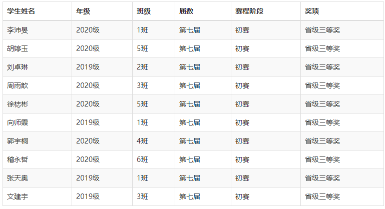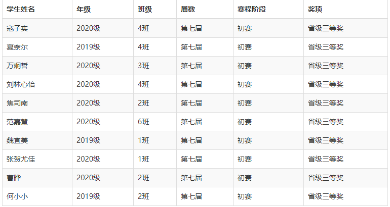 我校高中生共计207人参赛本次比赛,其中高一127人,高二80人。获奖的40名同学中,2019级王依雯、崔冉昀、冯浩洋以及2020级袁楚亭、王思佳、宋宇赫、穆高乐、朱笺千等8位同学获初赛省级一等奖;陈彦哲等11人获初赛省级二等奖;寇子实等21人获初赛省级三等奖。获得一等奖的8位同学将有资格参加第七届全国科幻作文大赛现场决赛。另外,我校高中语文组虞昌华、黄露、赵璐、任健老师被聘为大赛初评老师。