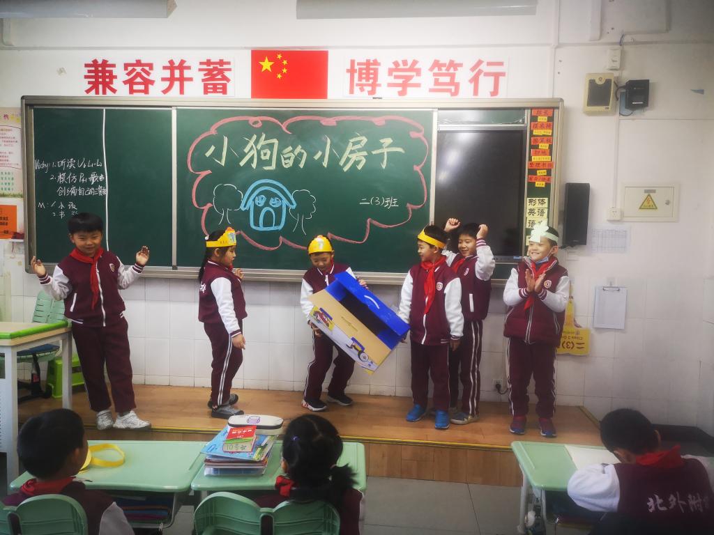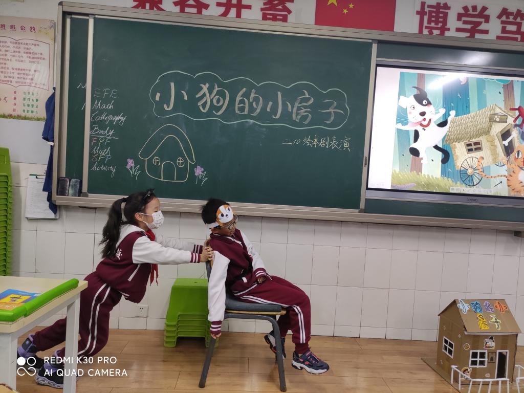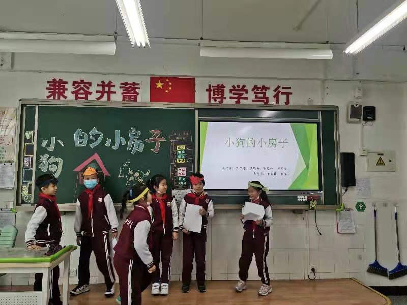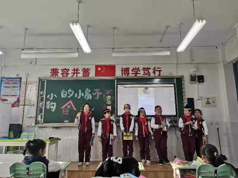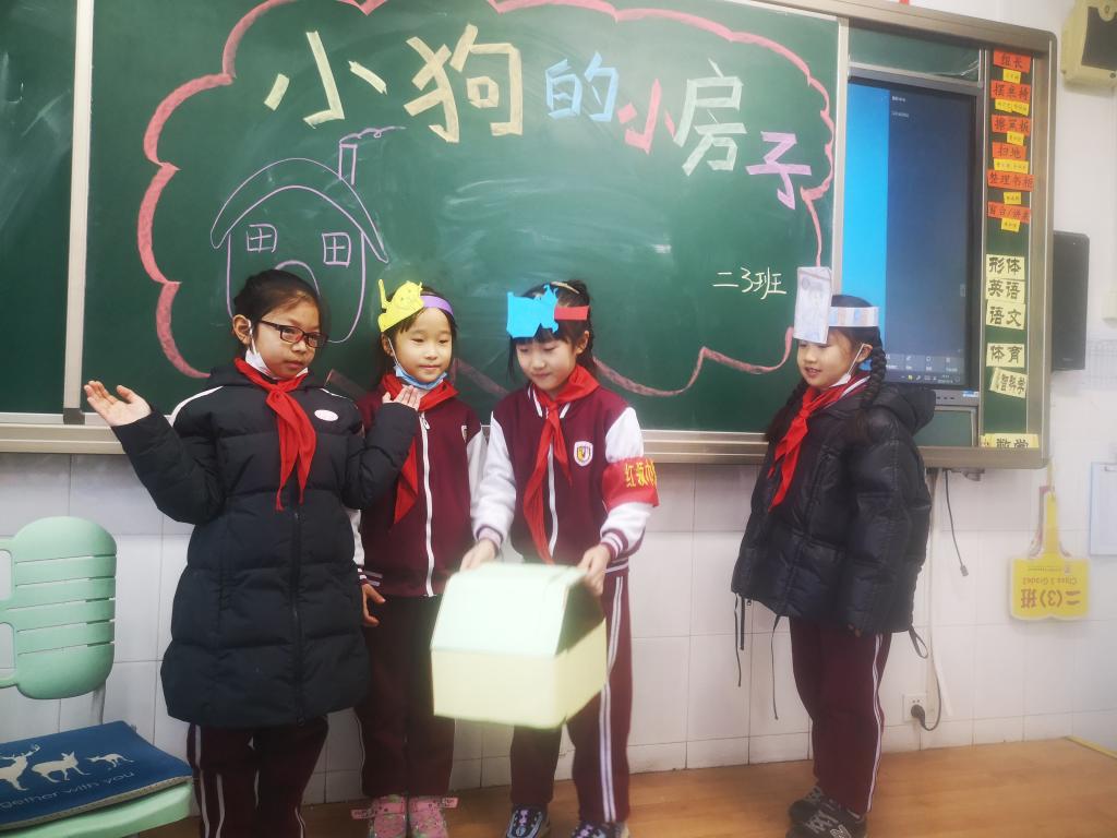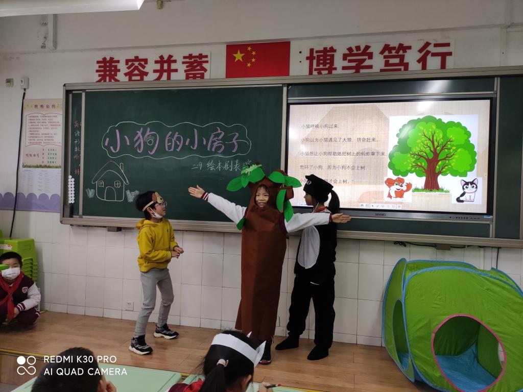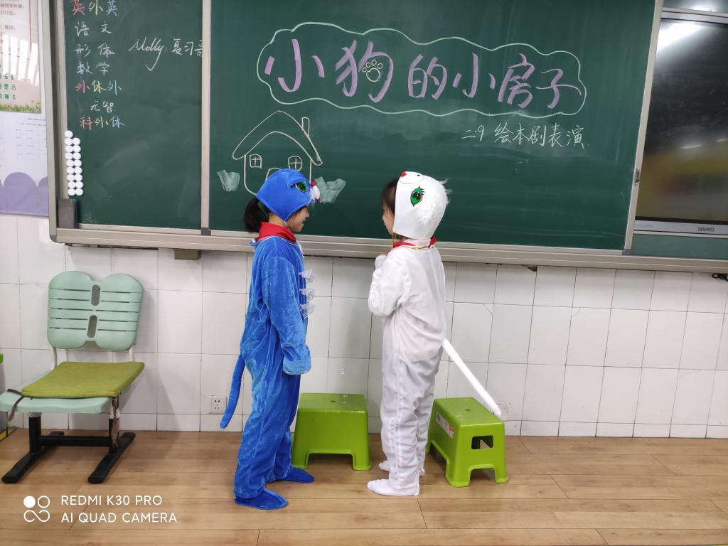 本次活动以绘本剧的形式开展。在老师的精心组织下,孩子们积极准备道具,分组排练《小狗的小房子》中自己认为最有意思的情节。在展演时孩子们表演得惟妙惟肖,有的表演小猫,有的表演女主人,有的表演小房子,班级气氛活跃,孩子们活灵活现的表演不时赢得台下观众的阵阵掌声。