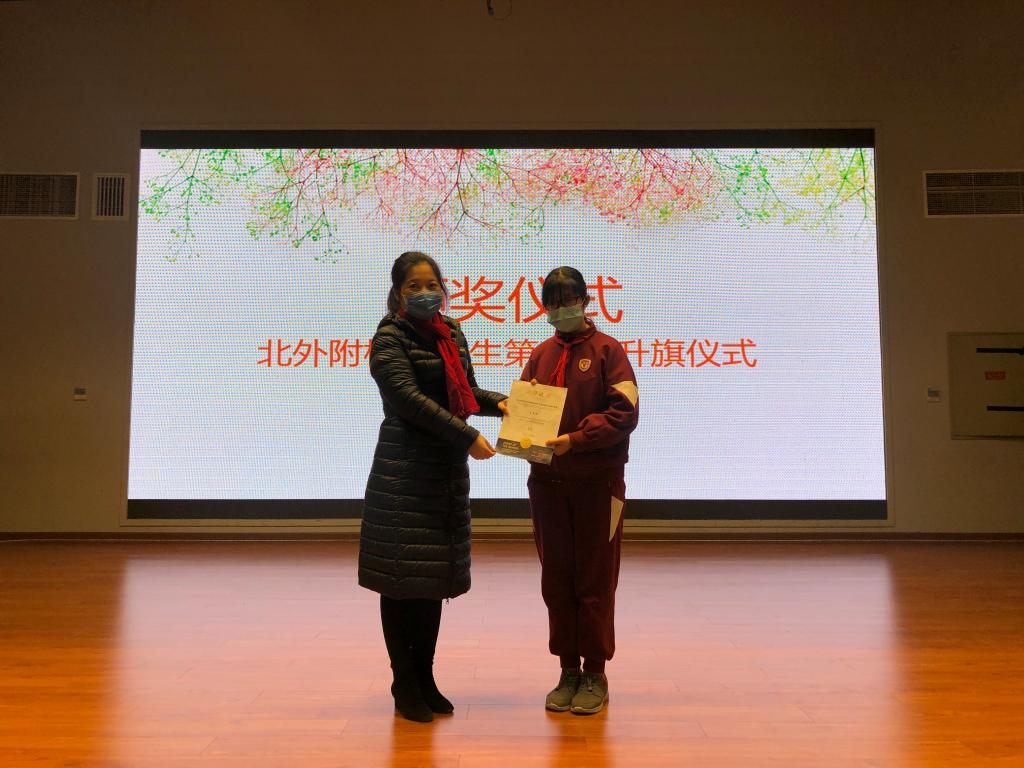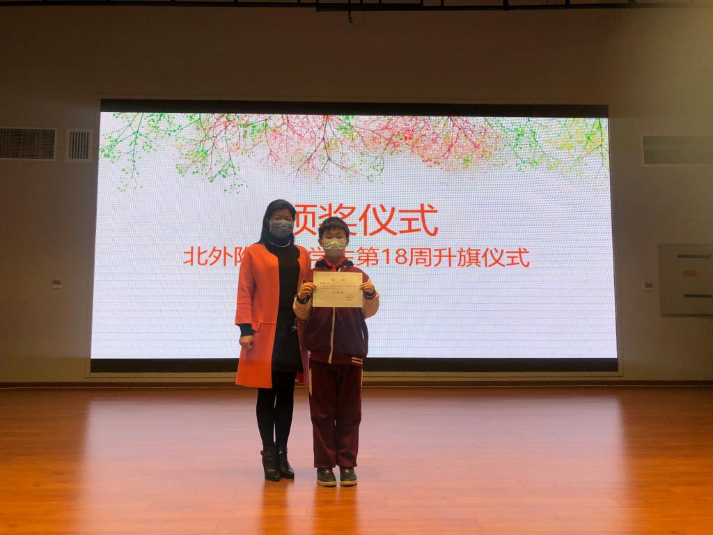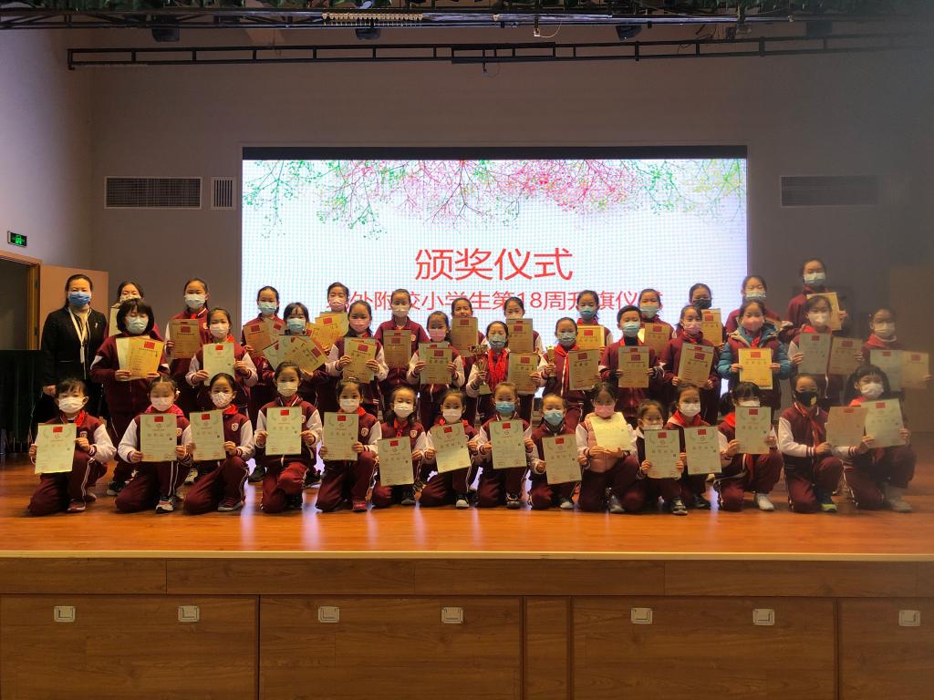 在本周的颁奖环节中,大队辅导员席欣如宣布啦啦操比赛、科技竞赛获奖师生名单,学校领导分别为获奖师生颁奖并合影留念。