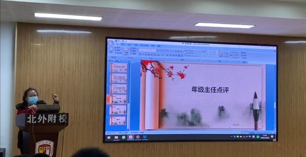 比赛结束后,李连秋对本次比赛进行了总结和点评,与此同时,计分员对各班的成绩进行了最终统计。李连秋表示,流利的背诵不是一天就能够达到的,这需要不断地积累练习。为了激励各位同学,她慷慨激昂地背诵了《江城子·密州出猎》,并祝愿各位同学在接下来的语文学习中取得更好的成绩。