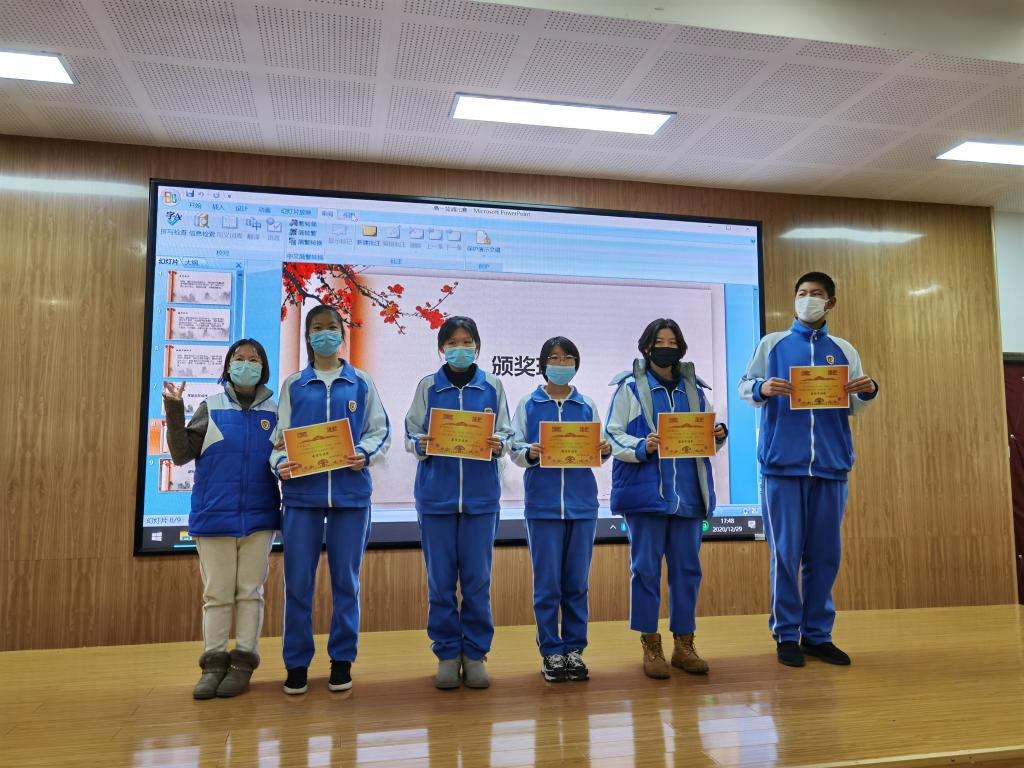 最终,各班的班主任为各班参赛代表颁奖。高一(1)班以85分的高分夺得冠军,二、三班分别获得第二名、第三名。