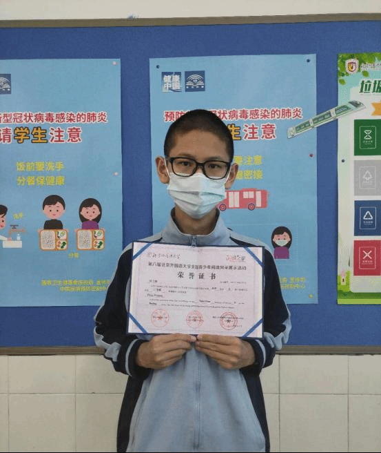2020年6月中旬,由原初三(7)班官以康、沈阅和初三(8)班张冬俣撰写,崔淑珍老师和王学辉老师指导的发明创造类项目《利用注射器设计装置玩转化学实验》荣获北京市中小学金鹏科技论坛“二等奖”。进入北京市决赛的一共有476只队伍,其中初中组由来自人大附、清华附、北大附、一零一、北京四中等学校的111支队伍参加此次3个项目的角逐。