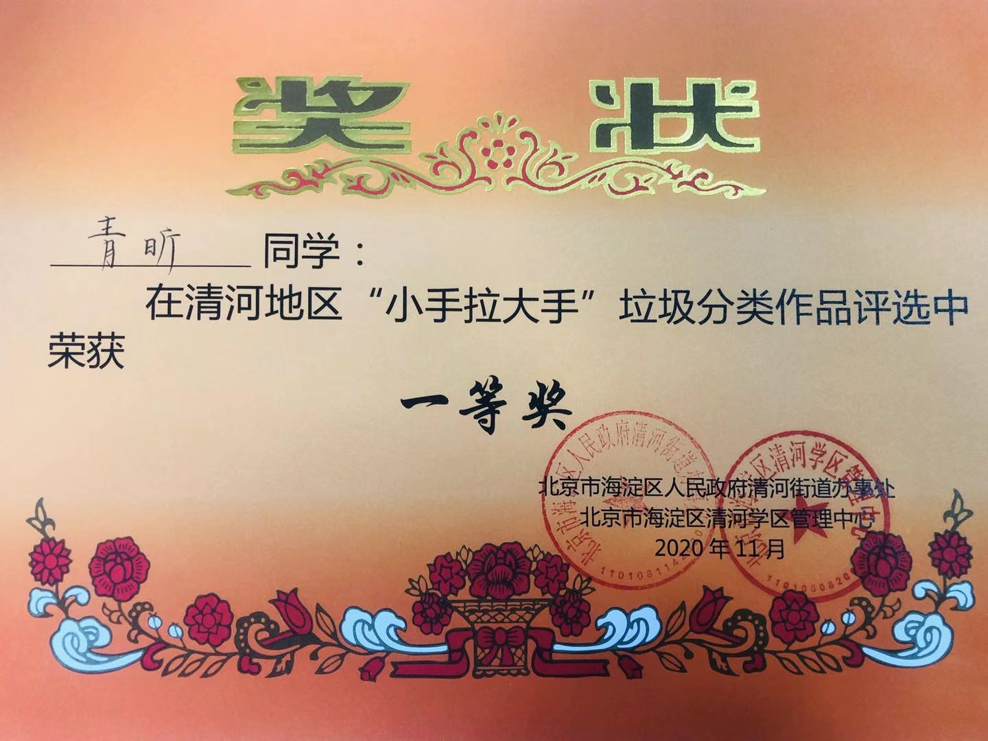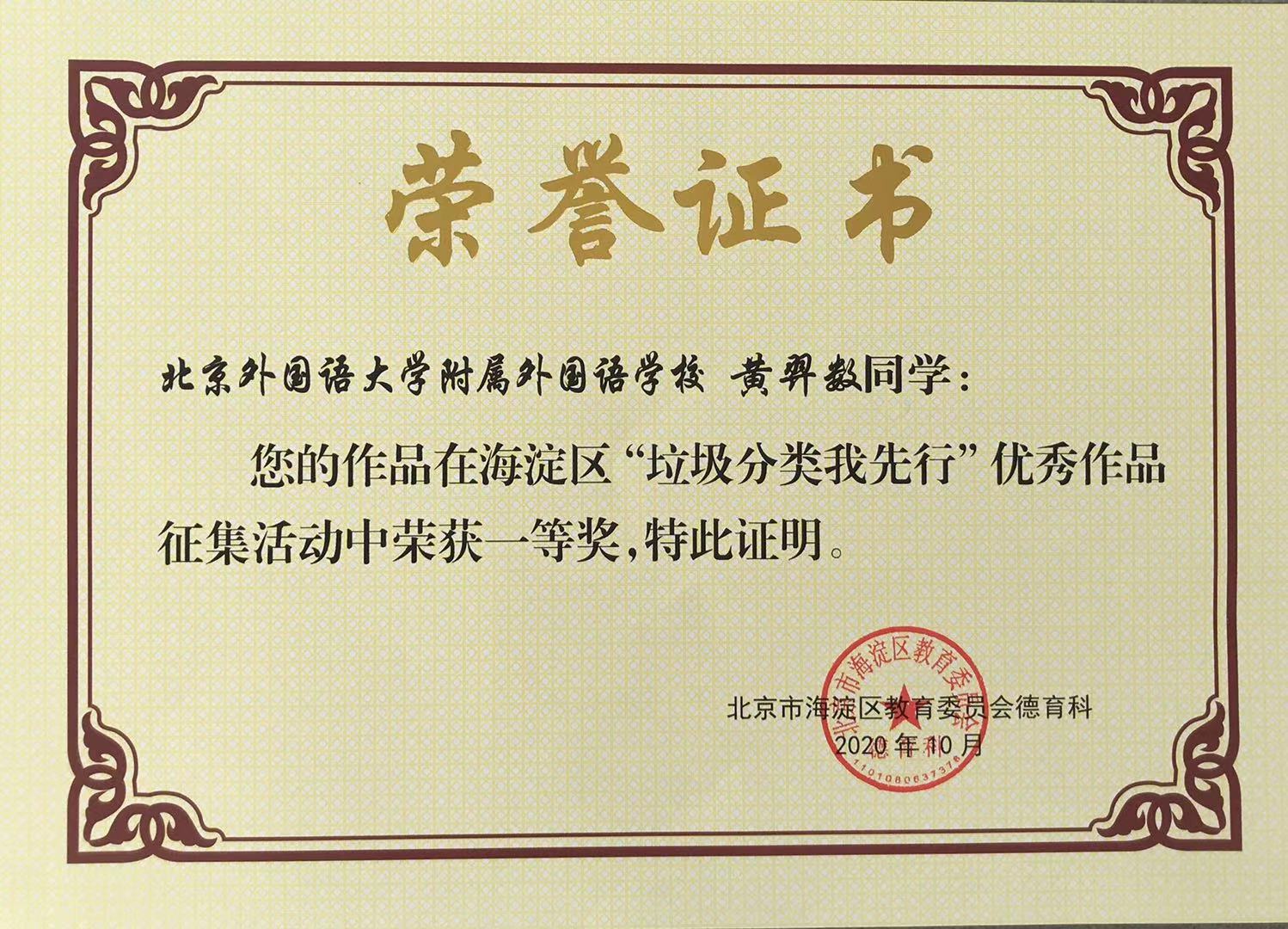 海淀区“垃圾分类我先行”优秀作品征集一等奖