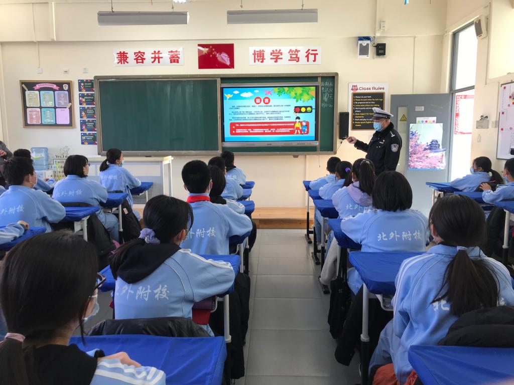 为增强学生的交通安全意识,教育学生关爱生命,严防道路事故,打造平安校园,北外附校开展了一系列交通安全知识的教育活动,交通安全教育工作常抓不懈。1月8日,在寒假来临之前我校开展了“关爱生命,安全出行”为主题的中小学生寒假前交通安全教育。