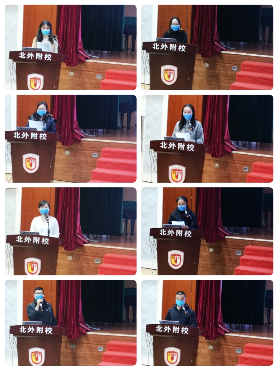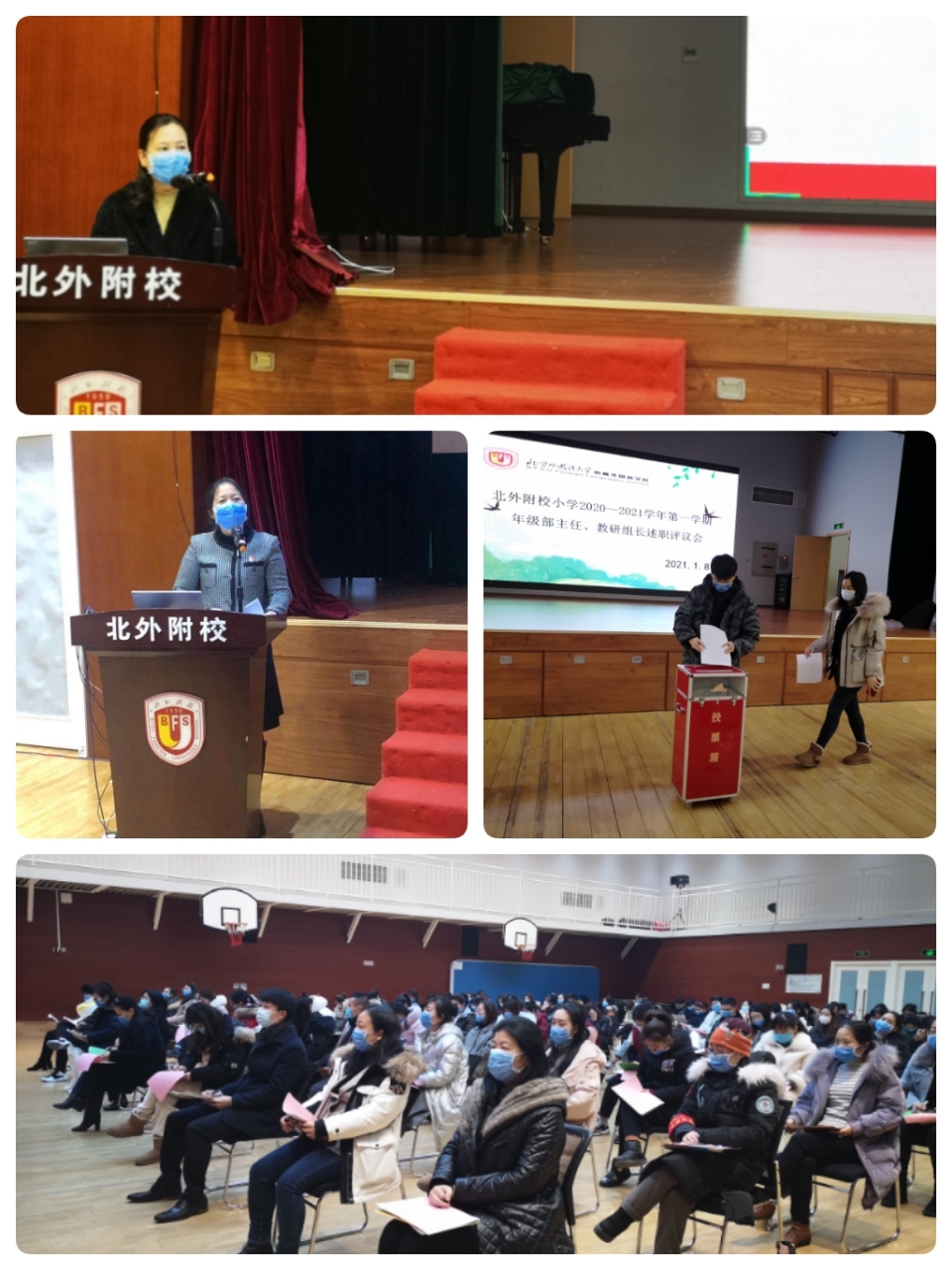 2021年1月8日和1月15日,我校年级部主任、教研组长和中层干部、主管在国瑞厅举行述职评议会。为做好防疫工作,会议分为主会场和分会场直播,以保证参会老师们之间的安全距离。会议由我校党办主任李琳主持。