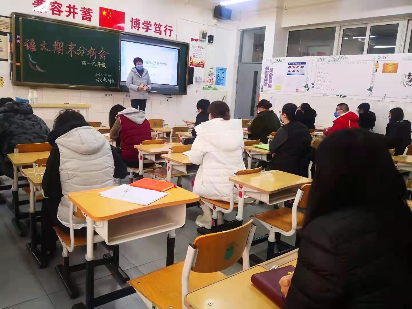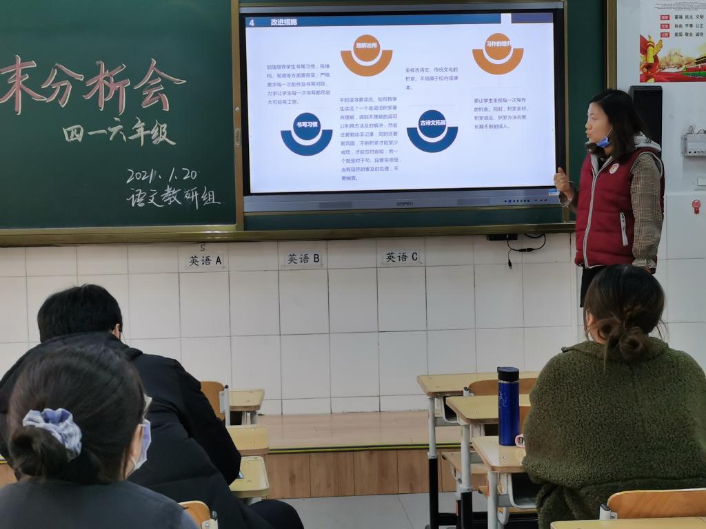 为全面提升我校语文教育教学质量,督促教师总结经验,发现存在问题并分析成因,有针对性地改进教学,1月19日下午,我校小学语文教研组(高段)召开四至六年级语文期末质量分析会。