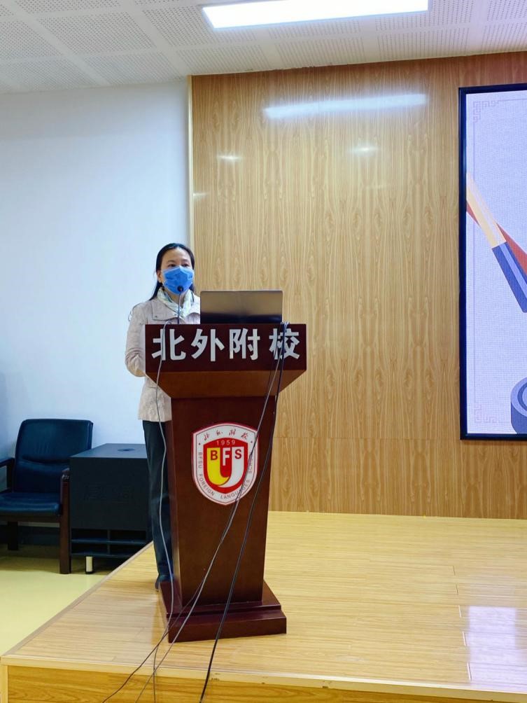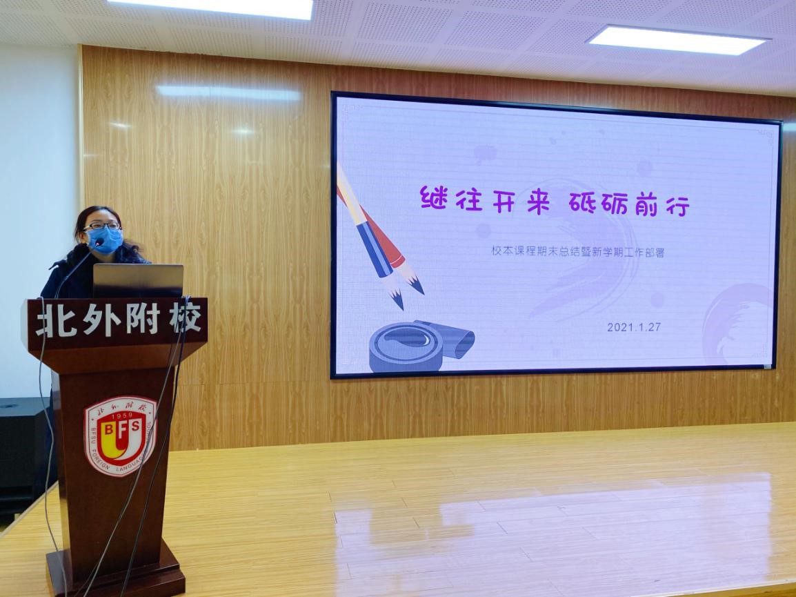 张继军在总结中首先肯定了本学期老师们对校本课程开发和建设所作出的努力和贡献,接着她解读了学校课程建设的工作思路。张继军指出,我校将聚焦高质量发展作为主题,关注课程的整体育人功能及学科内、学科间的联系与整合,积极研发包括美育、体育、科技、劳动、心理健康教育等“项目学习”课程和课外课程,完善高质量的课程体系,探索构建“五育并举”的特色课程体系,开展“新课堂、新教学”实证研究。她要求,教研组要能够依托我校硬件优势,加强专业知识学习,提升教师内升力,构建高质量的教师队伍,寻求提高教育教学质量的科学方法和有效途径。希望下一步要对校本课程设置进行优化,完善管理制度与评价制度,促进校本课程建设和发展,早日实现“全国一流外国语学校”的奋斗目标。