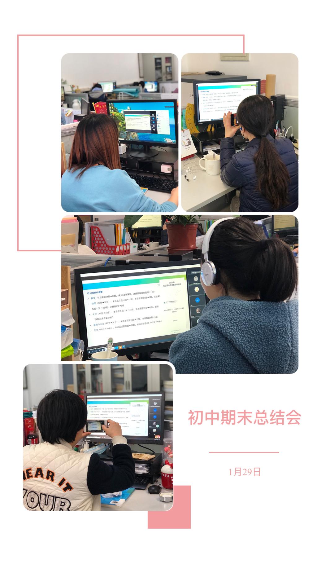 时光荏苒,转眼间一学期即将结束,为更好地总结教育教学工作成果,对以后的工作提出新的方向和目标,1月29日下午,我校初中校区召开2020-2021学年第一学期期末工作总结会。按照学校防疫工作要求,教研组长、备课组长在二阶主会场参会,其他教师在办公室通过腾讯会议平台远程参会。副校长、初中校区执行校长杨磊出席此次会议并做期末工作总结。