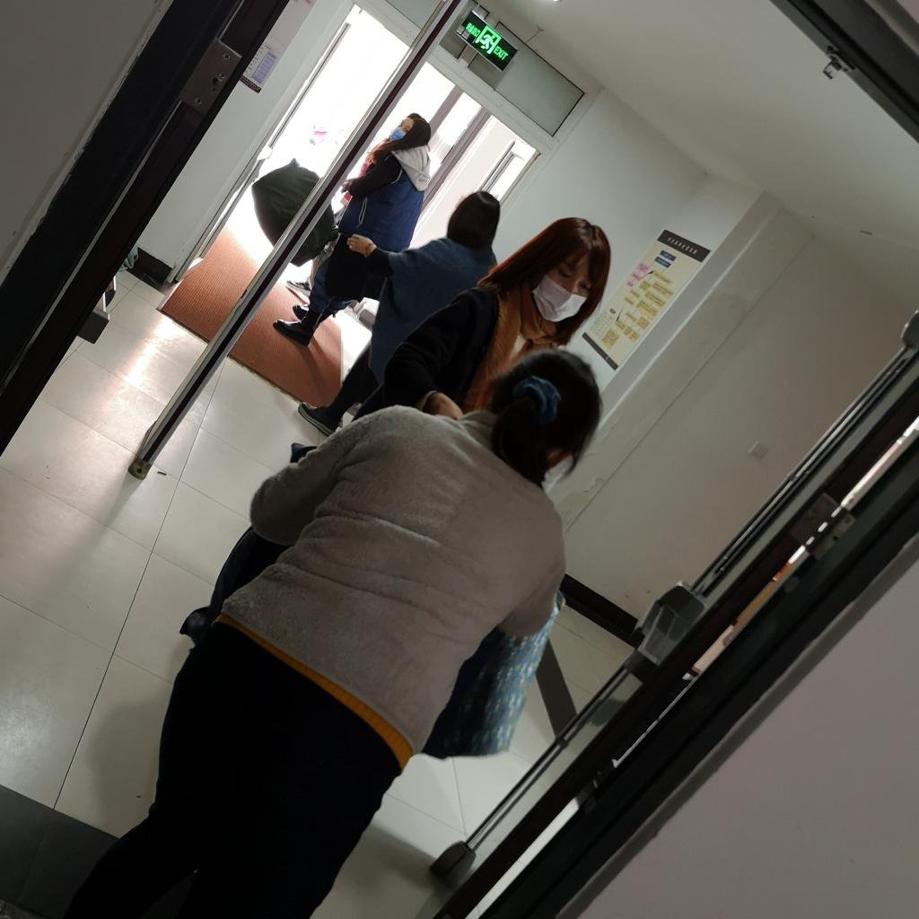 小学上千名学生的被装搬运是个不小的工作量,大家分工合作,有负责接待家长的、有负责楼层间搬运的、有负责分配被装到房间的。乍暖还寒的初春,气温虽然低,但是老师们都干得热火朝天。搬运被装老师自动形成一条搬运长龙,将学生被装一层一层递送到每一个楼层及学生房间。