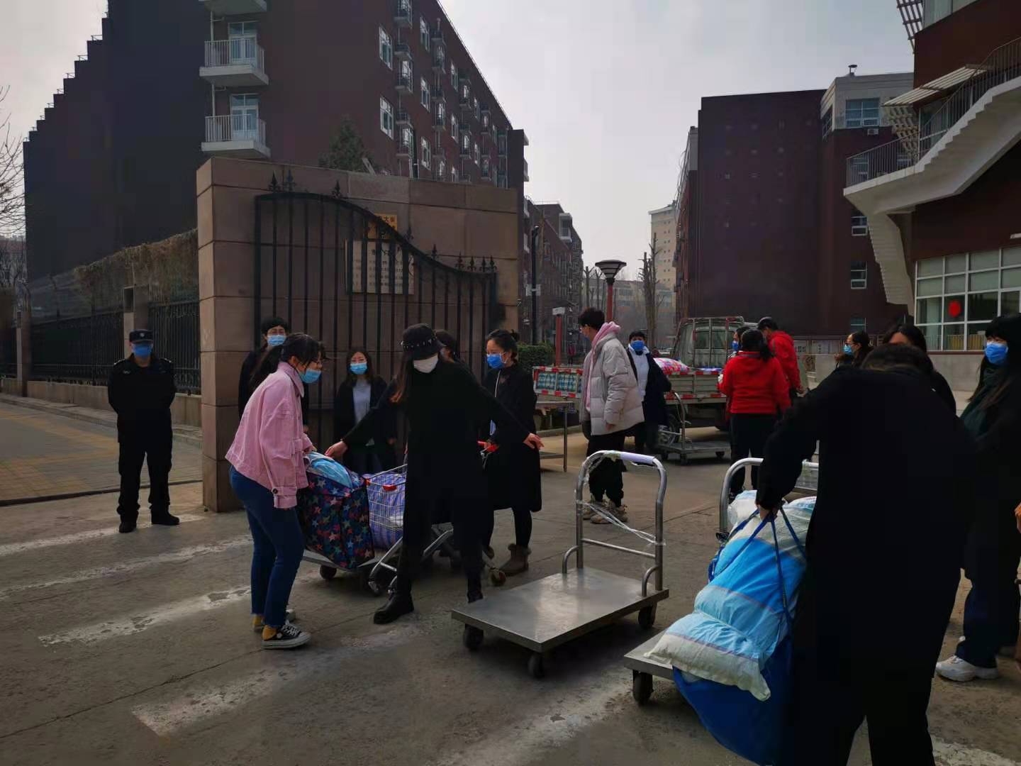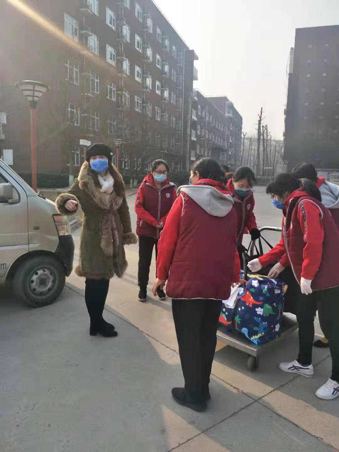 2月27日一早,在我校党总支书记张继军精心布置下,小学校区各年级部主任及科任老师大力协助下,开始了紧张的被装搬运工作。