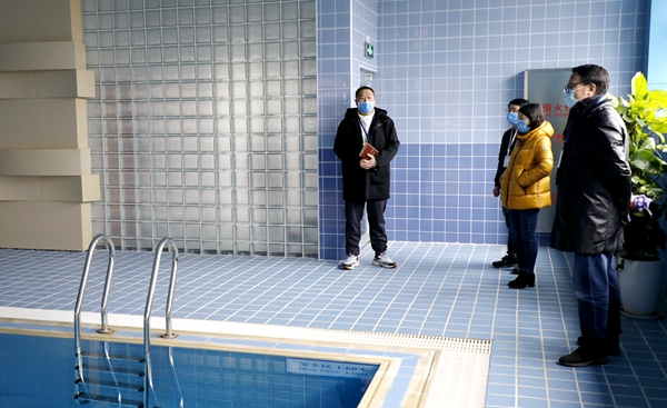 林卫民一行先后到综合楼、中控室、游泳馆、培训学校、校医室、学生宿舍、食堂、小教楼、社区办园点、实验室等重点点位进行了细致的检查,了解相关区域负责人的管理情况,并提出严格周密的要求和建议。此外,还对疫情防控工作、学校食品安全和校园安全管理的自查工作进行了核查,确保在新学期给学生营造一个安全祥和的学习生活氛围。