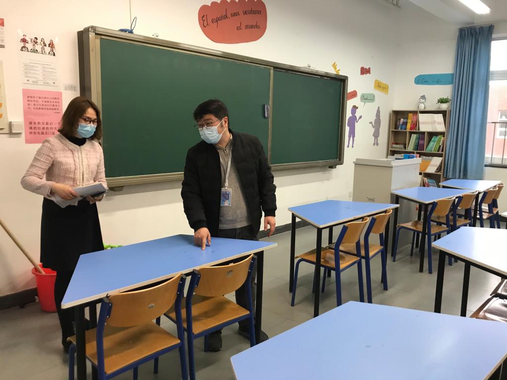 我校小学、初中、高中等校内单位相关负责人同时开展了全面具体的安全隐患排查及疫情防控各项工作,做到不漏一处、不留死角,分解细化任务,推进责任落实。