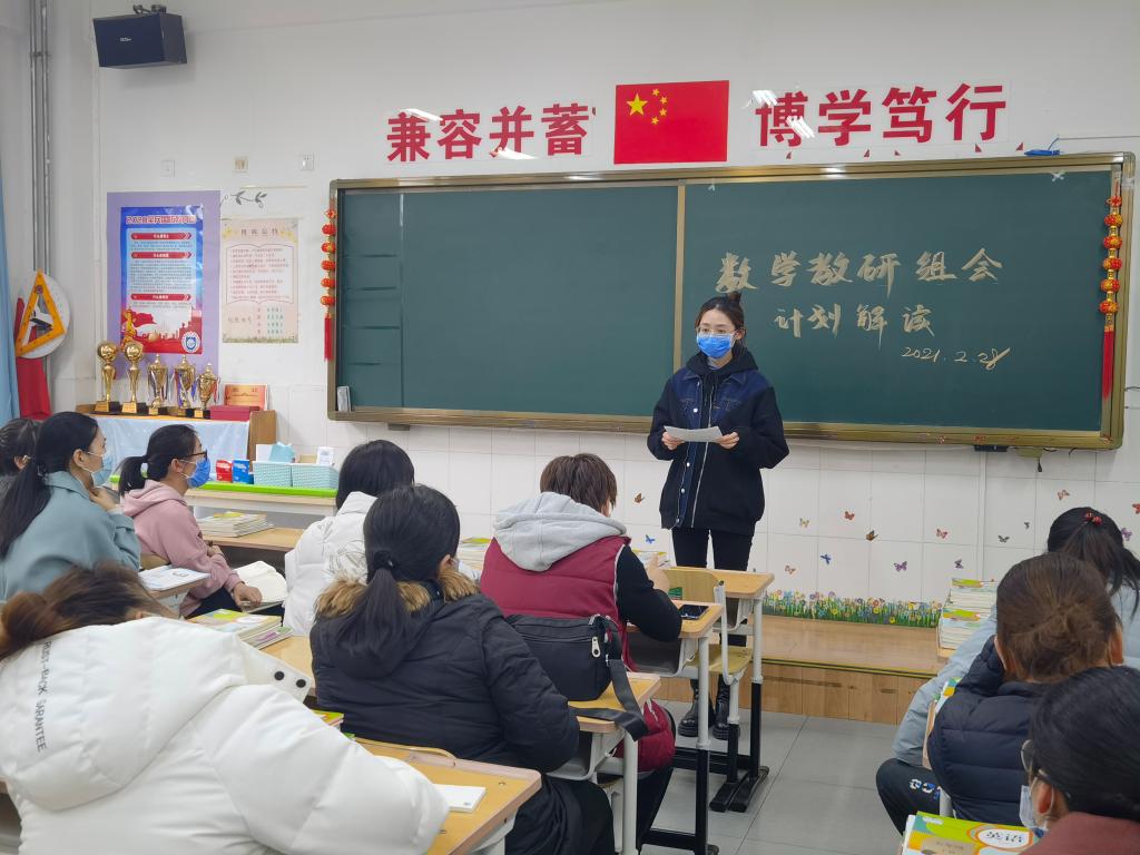 2021年春季学期是迎接建党百年重要节点的新学期,是“十四五”开局之年的第一个学期。2月28日下午,为使新学期教育教学工作顺利开展,打造高质量数学课堂,促进教师高质量专业发展,我校小学数学教研组召开新学期教研组会。全体数学教师参会,数学教研组长赵阳、于德平主持会议。