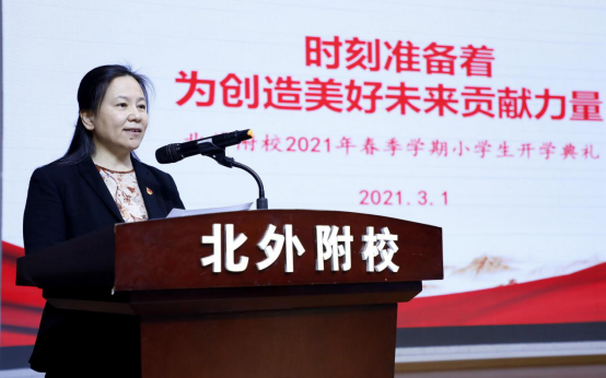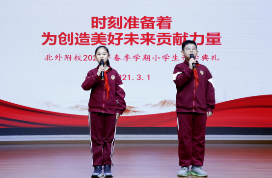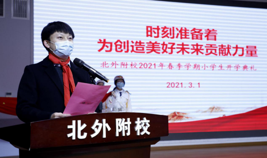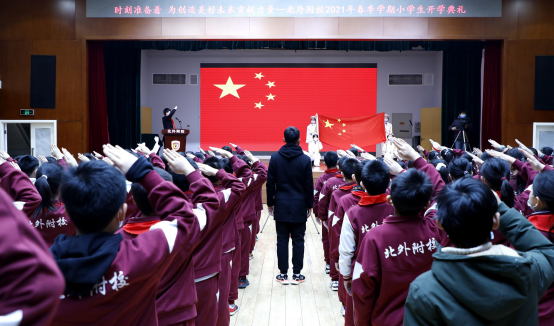 为了喜迎中国共产党100周年华诞,培养为创造美好未来贡献力量、时刻准备的社会主义建设者和接班人,3月1日上午,我校小学在国瑞厅举行了主题为“时刻准备着,为创造美好未来贡献力量”的开学典礼。国家督学、研究员、北京外国语大学校长助理、我校校长林卫民,党总支书记、小学校长张继军,副校长,各校区执行校长,小学中层以及各部门负责人,全体小学师生参加典礼。典礼由小学副校长孙亚楠和两位小主持人庞博轩、张梓琪共同主持。