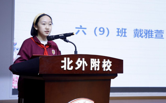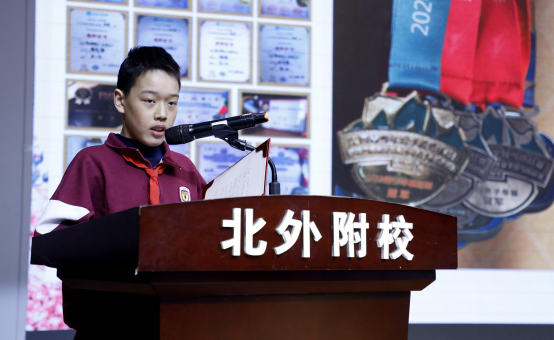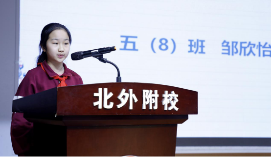 带着对时代楷模的深深敬仰,校园之星代表尚久智、邹欣怡、戴雅萱讲述了他们的梦想和在“逐梦”过程中如何蓄积力量,为创造未来做好准备的励志故事。自2018年起,在全国青少年滑雪挑战赛中,连续三年蝉联总决赛冠军的尚久智同学,介绍了自己在追逐滑雪梦想的过程中,为了将来有朝一日能站在世界舞台为国争光,他凭借着高度自律、坚毅的品格,日复一日刻苦训练,为未来站上滑雪运动比赛的最高领奖台做好了充分准备。酷爱阅读的邹欣怡同学心系他人,在抗疫居家学习期间,她以一己之力在社区推广阅读、共享图书,建立“一零共享图书平台”,并带动其他社区,小小年纪的她以阅读引领社区新风尚,用实际行动践行着团结合作带来的巨大力量。戴雅萱同学介绍了家中长辈为祖国核能事业、航天事业奋斗终身的感人事迹,同时讲述了她从长辈身上传承了奋斗和奉献的精神,表达了自己时刻准备着,坚定理想、脚踏实地,创造美好未来的决心和勇气。
