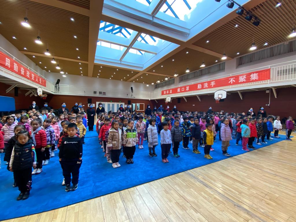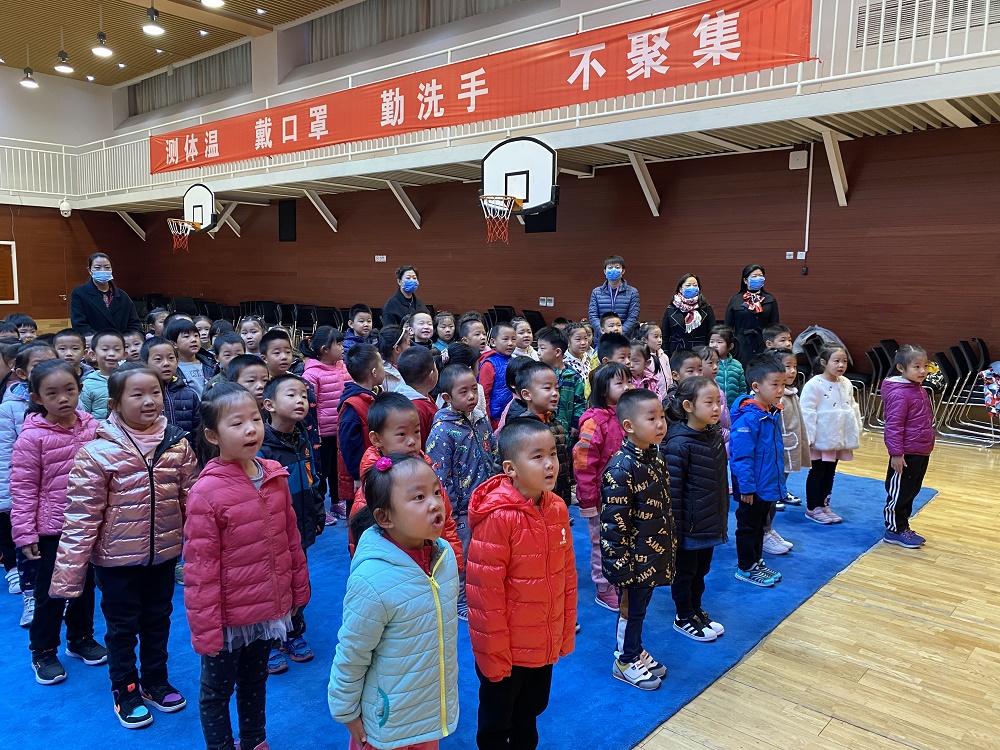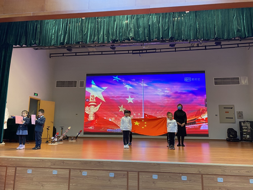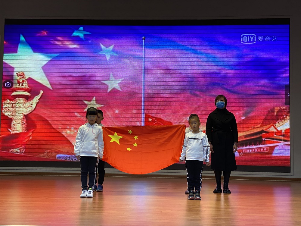 升旗仪式上,小主持人孙文菁、张珈睿身着正装,用中、英文进行双语主持,参加升旗仪式的小朋友们看上去个个精神饱满,充满活力。大家面向国旗,行注目礼,并高唱国歌;在庄严的国歌声中,注视着五星红旗冉冉升起。