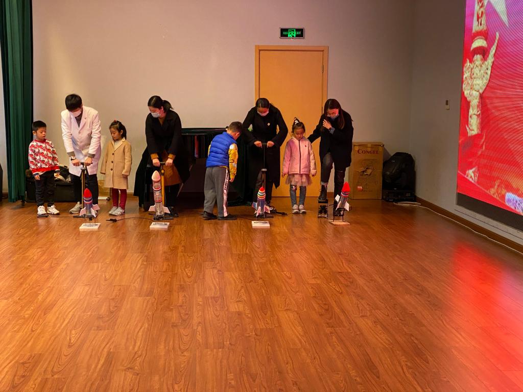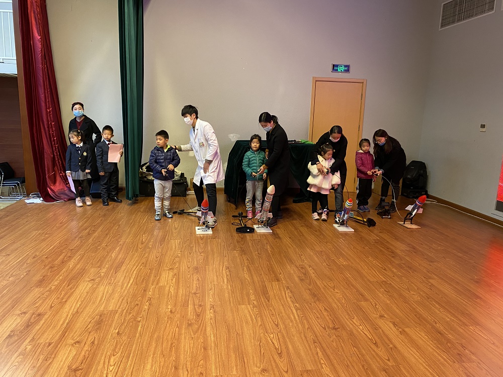 随后,力翰科学的老师们给小朋友们带来了有趣的科学小实验——发射“水火箭”。随着老师的演示,小朋友们不断发出惊叹声,兴奋不已,现场气氛十分热烈。在老师的引导帮助下,各班幼儿代表还亲自体验了水火箭“升空”的过程,了解了火箭发射的原理,感受到了科学技术带来的神奇力量。