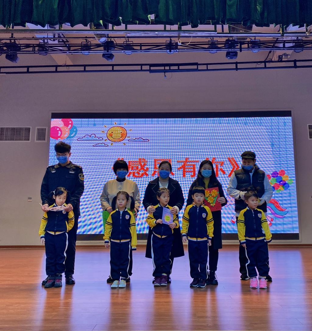 随后,孩子们将自己制作好的手工贺卡送给了叔叔阿姨们,用小小的行动表达了对他们的感恩之心。