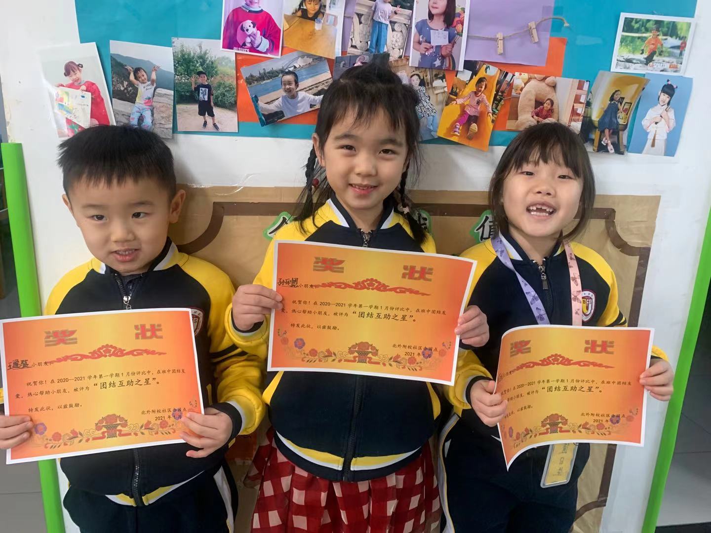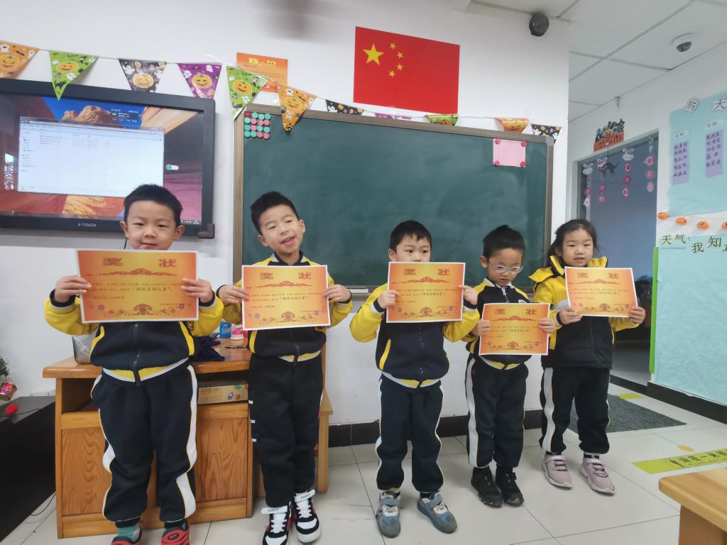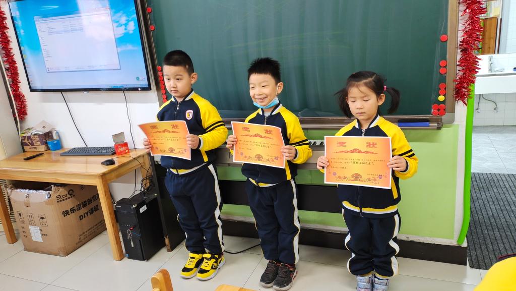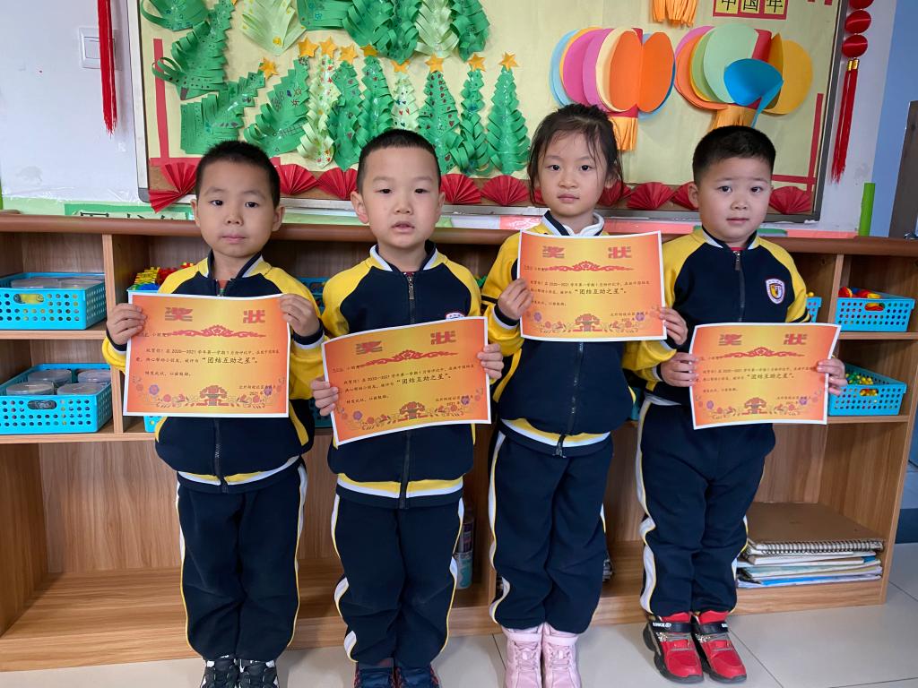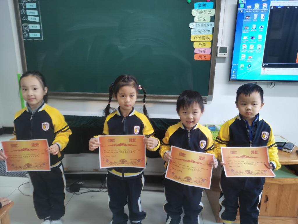 在颁奖环节中,共有32名小朋友获得“团结互助之星”称号,班主任为获奖的小朋友颁发奖状。